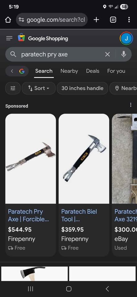 1 / 71 / 7Buy & SellParatech Pry AxeParatech Pry Axe$125Paratech pretty axe, missing bottom part. Regularly over $500 new... around $300 used. Make an offerWHERE TO MEETCheck LocationView MapSELLERJessicaVilla Park100 reviews0 chats·0 favorites·20 viewsSEND CHAT TO SELLERHi Jessica! I’m interested in your listing.Hi Jessica! I’m interested in your listing.Get the Karrot app to chatSign In to chat