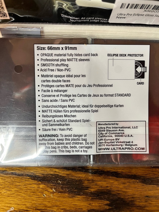 Protect your precious cards with these brand new Ultra Pro Eclipse Gloss Standard Deck Protector sleeves. These high-quality sleeves are designed to fit standard-sized cards, measuring 66mm x 91mm, ensuring a snug and secure fit. With 100 sleeves in each pack, you'll have plenty to safeguard your entire deck!