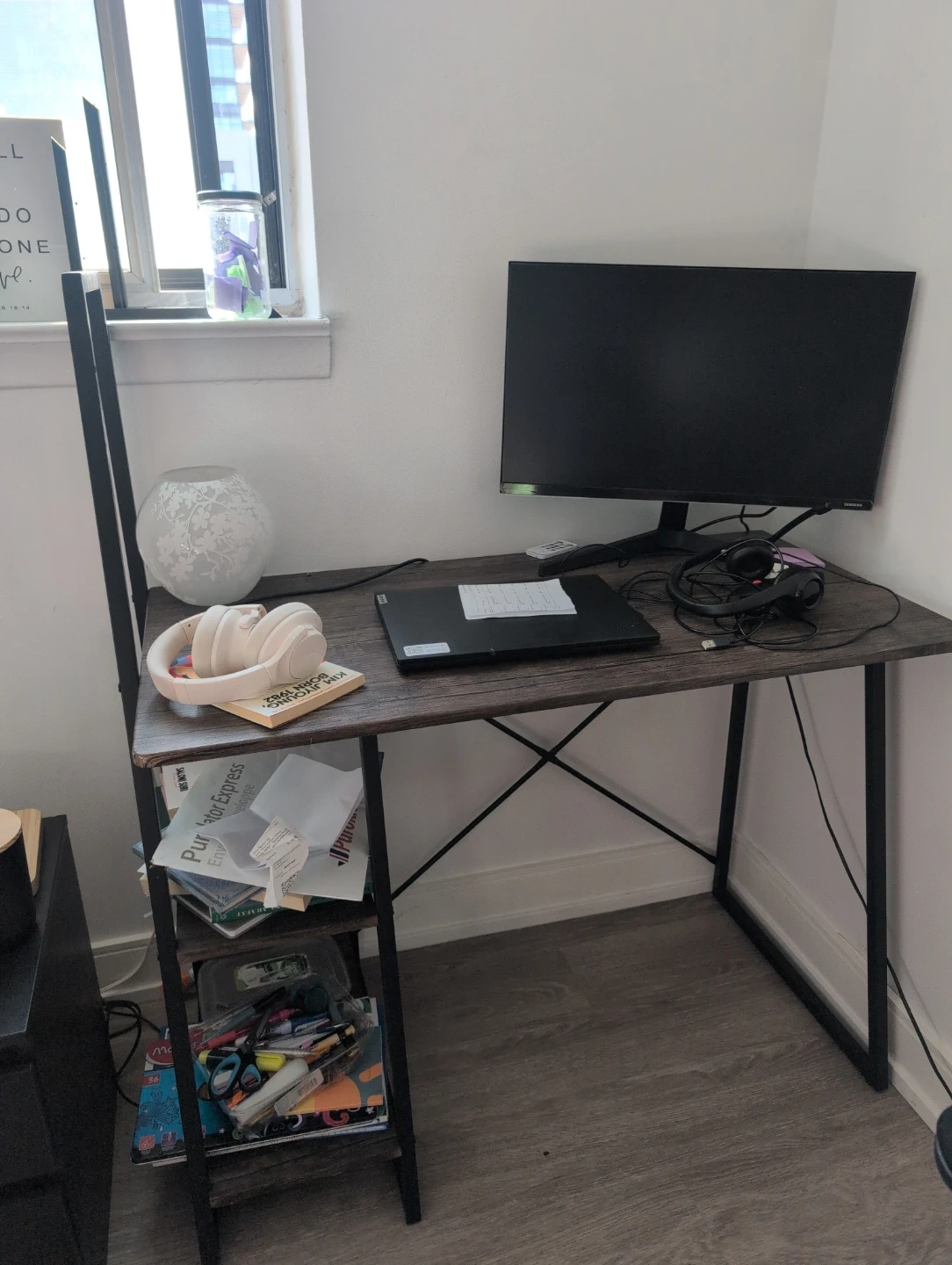 Selling a desk with built-in shelves! It's perfect for a home office or study space. The shelves provide extra storage for books and supplies