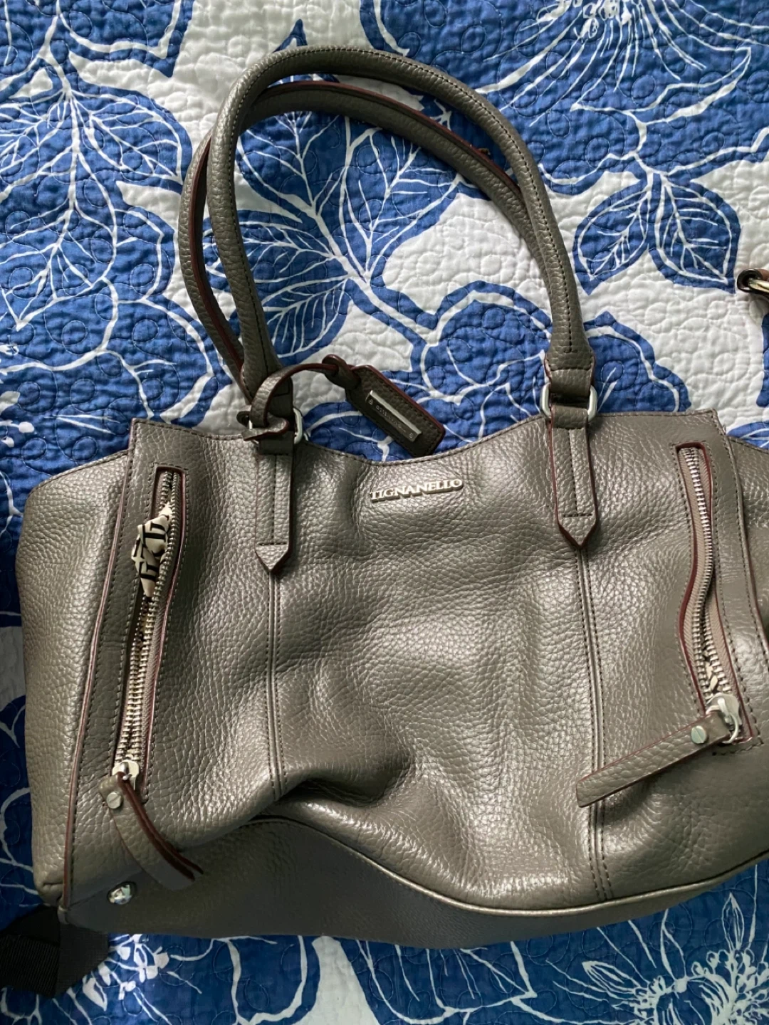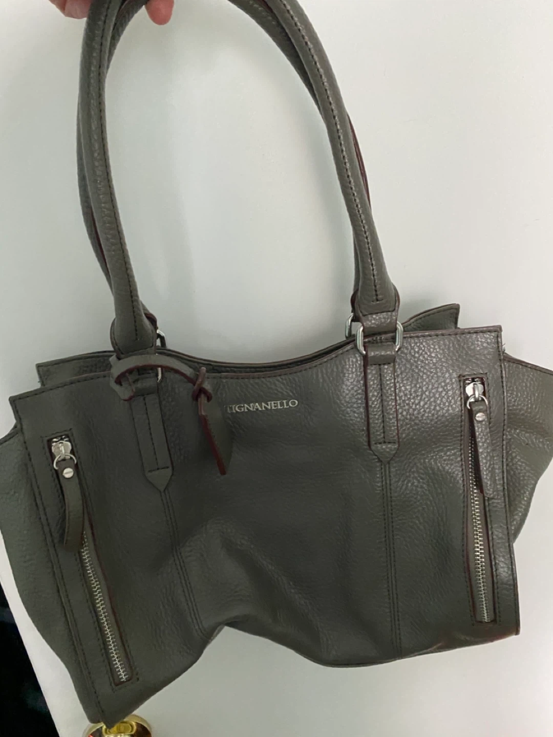 A lovely Lignanello tote bag in a neutral gray colour! It's perfect for everyday use or as a stylish work bag. The bag features a spacious interior and several pockets to keep your belongings organized. It's in great condition and ready for a new home!