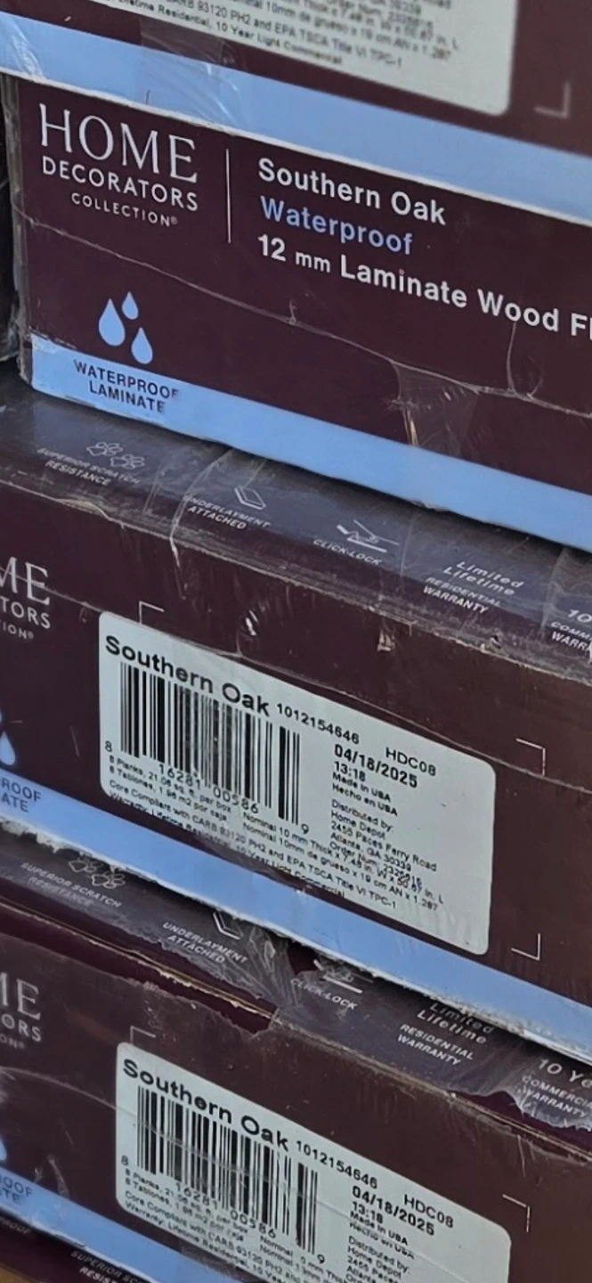 Selling 24 Boxes Home Decorators Collection Southern Oak 12 mm T x 7.6 W Waterproof Laminate Flooring. Each case covers 21.06 sq ft. Color/Finish: Southern Oak. Waterproof with superior scratch resistance. Great for residential and commercial use!