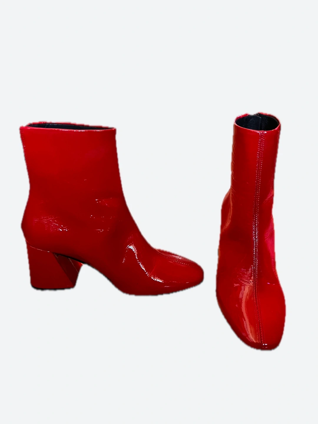 Selling a boots in a vibrant red patent finish! These stylish boots are a European size 37. The original price was $208+tax