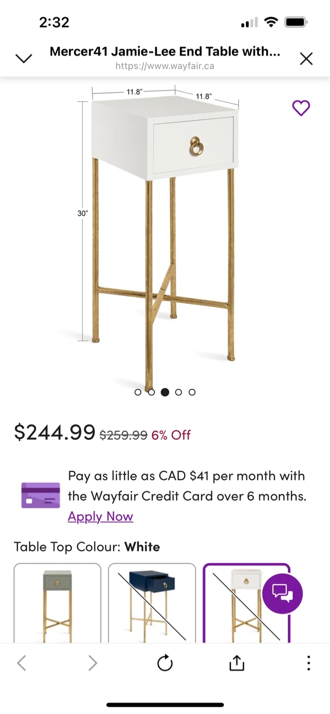 Selling a Mercer41 Jamie-Lee end table in white! It's a stylish and functional piece, perfect for any room. The table top colour is white. Originally bought for $244.99