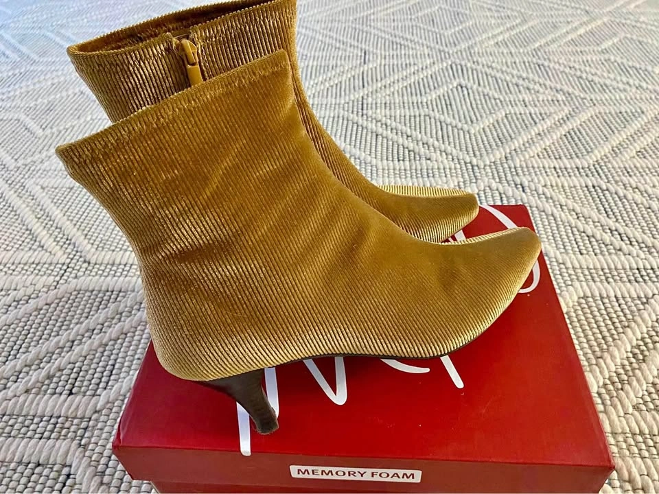 Buy & SellBootie Beauties!Bootie Beauties!$45These sand-gold, shimmer, thin-ribbed Impo booties are a true treasure—just not one I can keep. My loss is your gain. ONCE-worn/with the box. Size 9.5.0 chats·0 favorites·2 viewsSELLERMYFleetwood100 reviewsWHERE TO MEETCheck Location