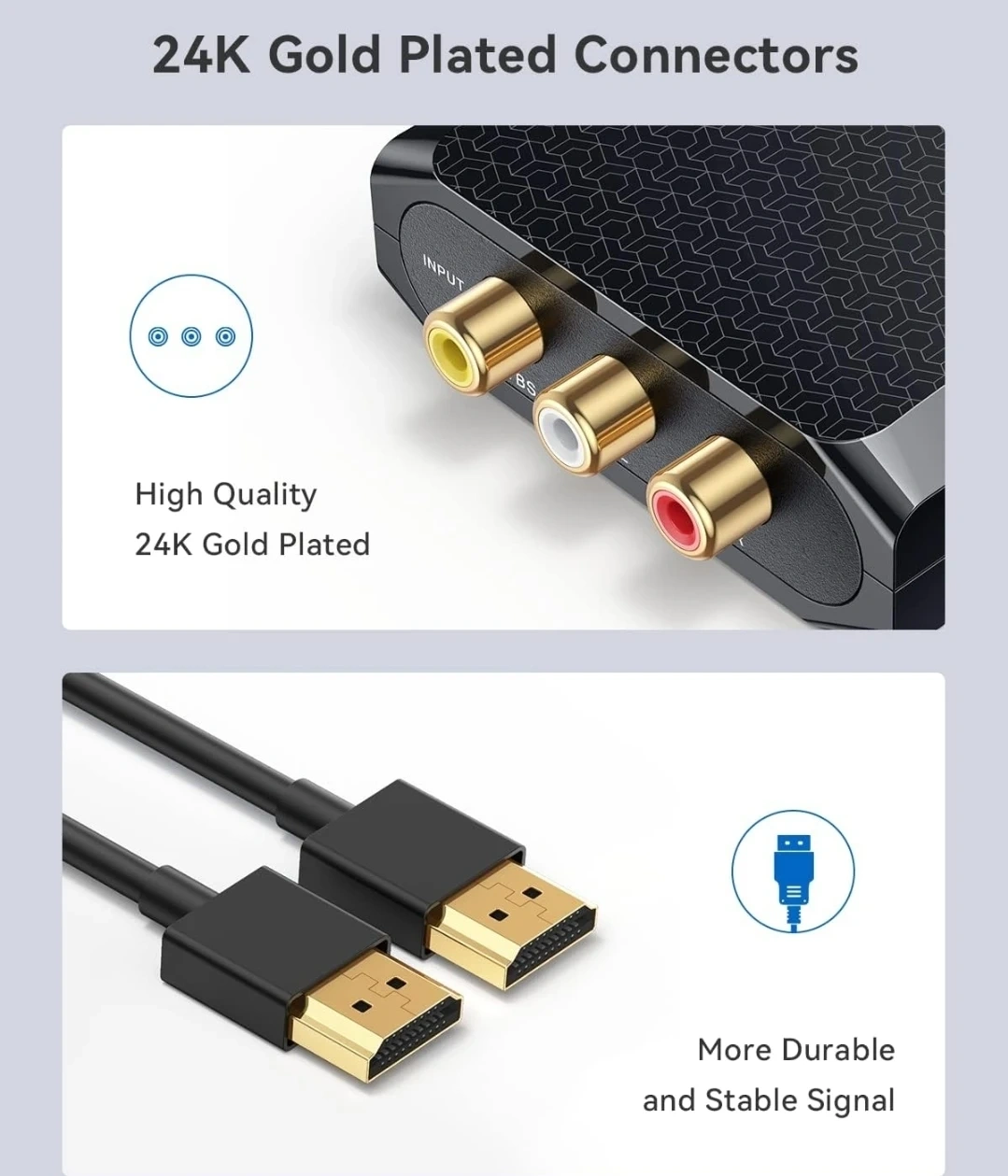 Selling a Wenter RCA to HDMI Converter. It supports 1080P and is compatible with a variety of devices, including PS3, Wii/Wii U, DVD players, and more. It comes with 24K gold plated connectors for high quality and durable signal. You'll also get three longer cables: HDMI, USB, and RCA