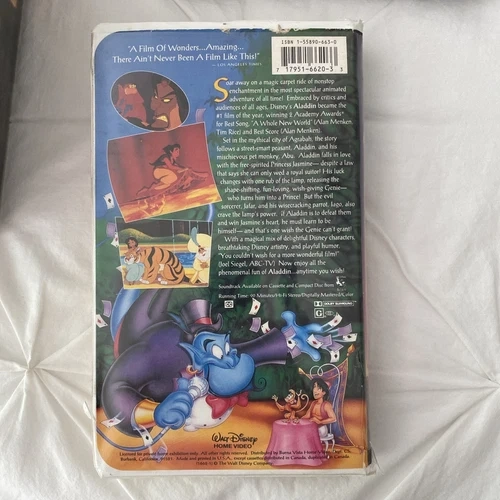 Relive the magic of the Arabian Nights with this classic VHS tape featuring the beloved tale of Aladdin. Perfect for collectors and fans of vintage media, this tape brings the enchanting story to life with stunning animation and heartwarming adventure.