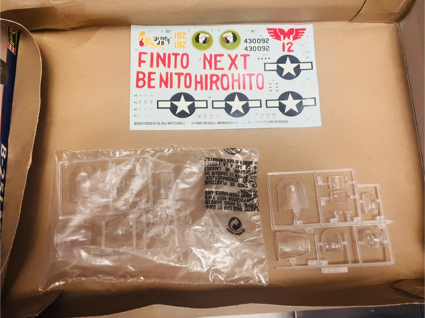 REVELL B-25J MITCHELL U.S. WWII BOMBER 1/48 SCALE MODEL KIT 85-5512 Open Box