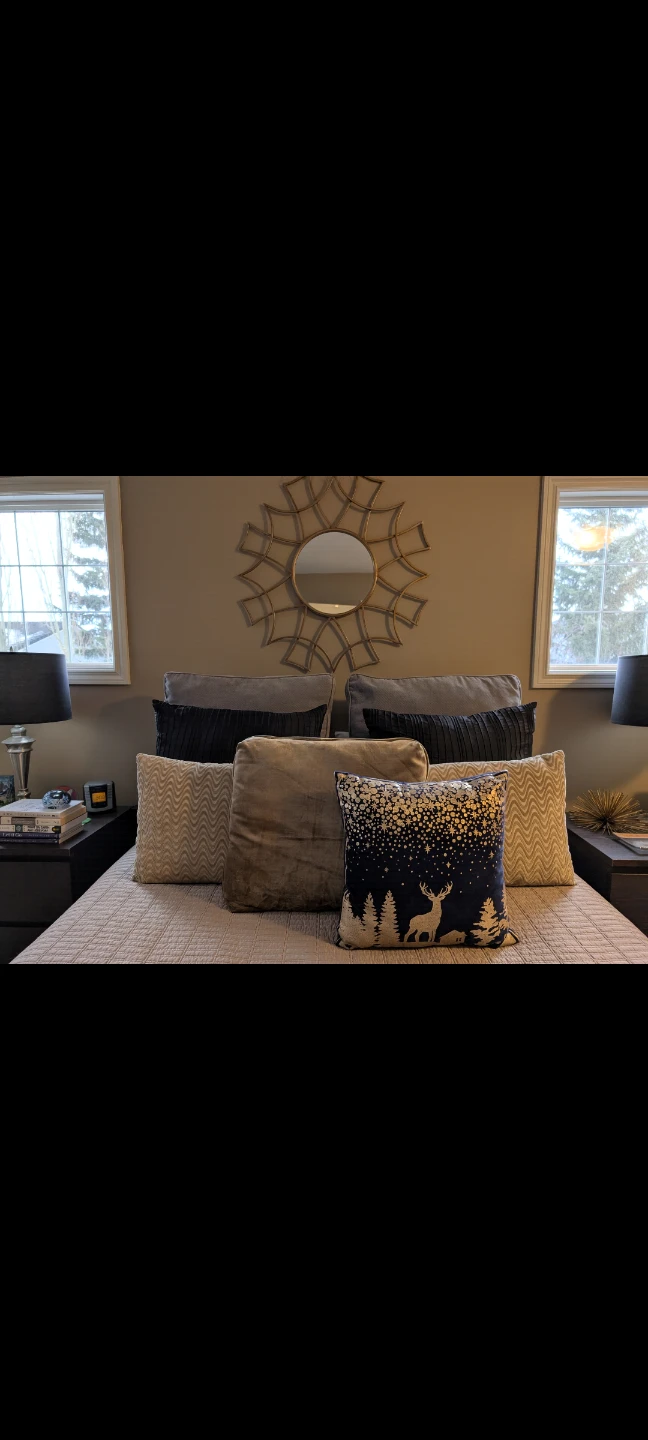 This gold and navy throw pillow is a beautiful addition to accent any winter-themed or holiday decor!