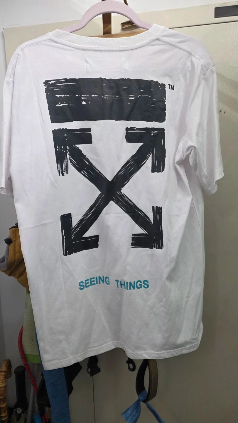 Selling a white Off-White T-shirt with the iconic arrow design on the back and the "Seeing Things" print. The shirt is in great condition and ready for a new home! Perfect for adding a streetwear touch to your wardrobe