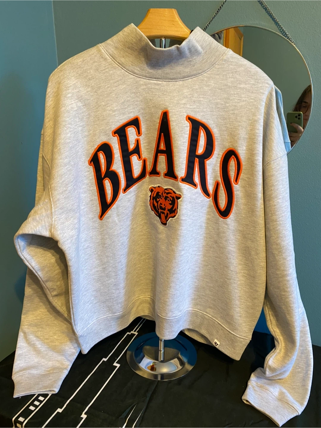 Thick gray crewneck with embroidered Bears logo + lettering.