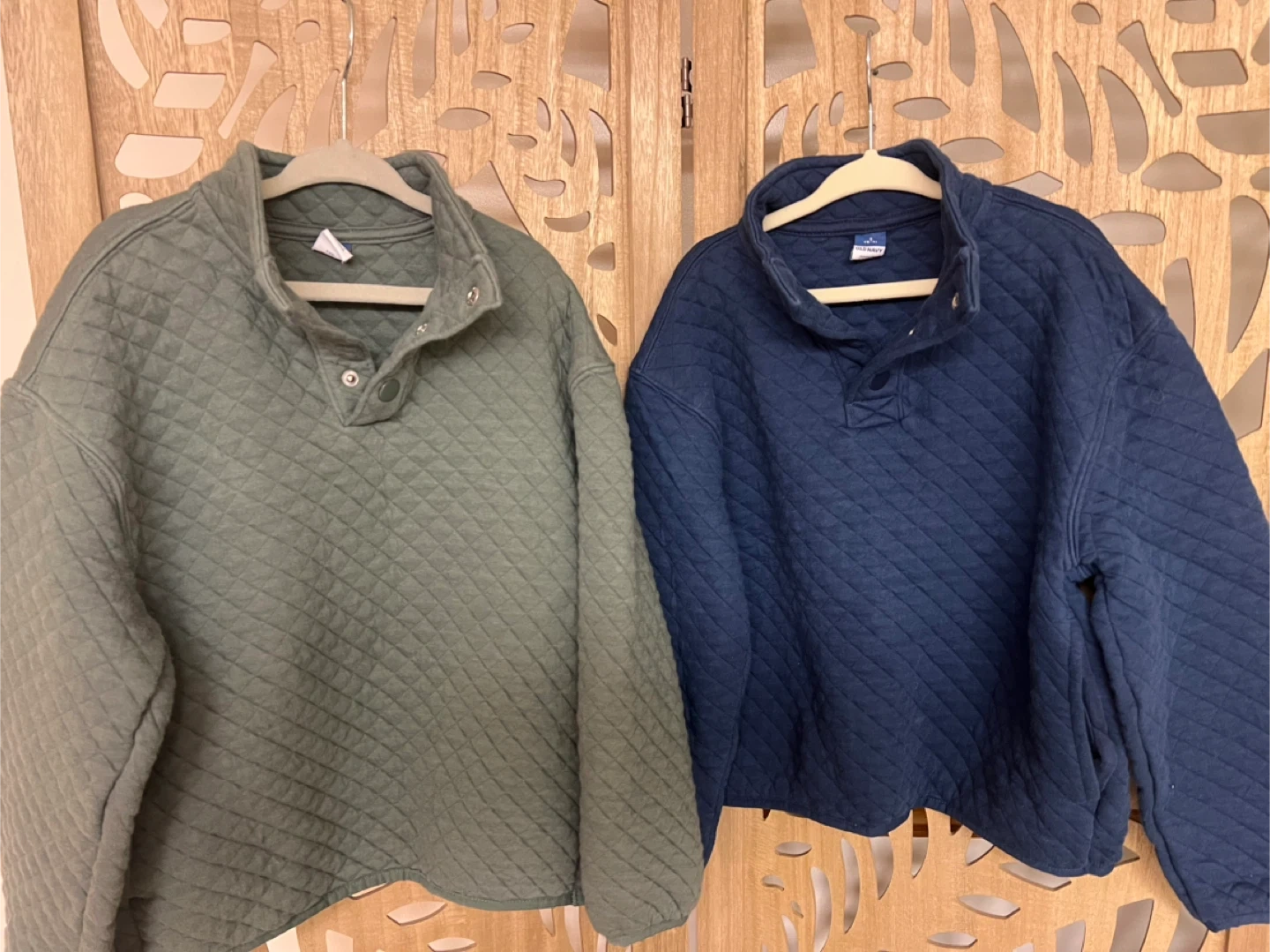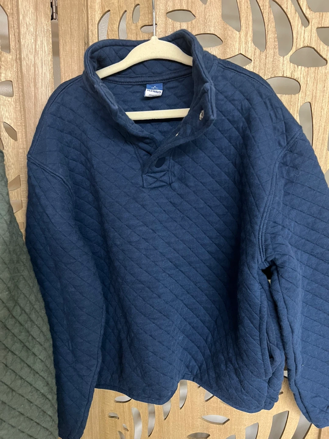 Selling two Old Navy quilted pullovers! One is a nice green color and the other is navy blue. They are both in great condition and perfect for layering during the cooler months.