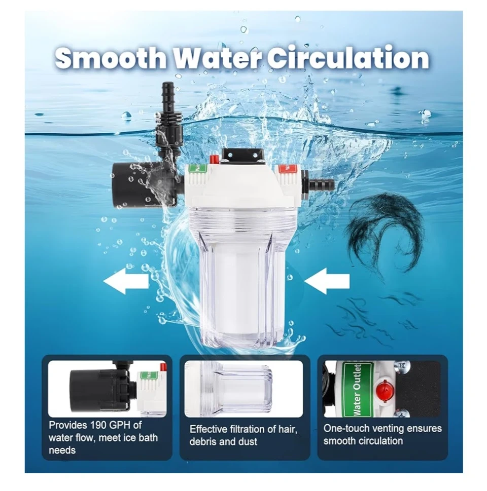 This brand new! Poafamx cold plunge tub chiller is perfect for creating your own ultimate cold plunge experience! It features powerful cooling using R290 refrigerant and operates at a low noise level while saving energy. The chiller ensures smooth water circulation with effective filtration of hair, debris, and dust. Box included!