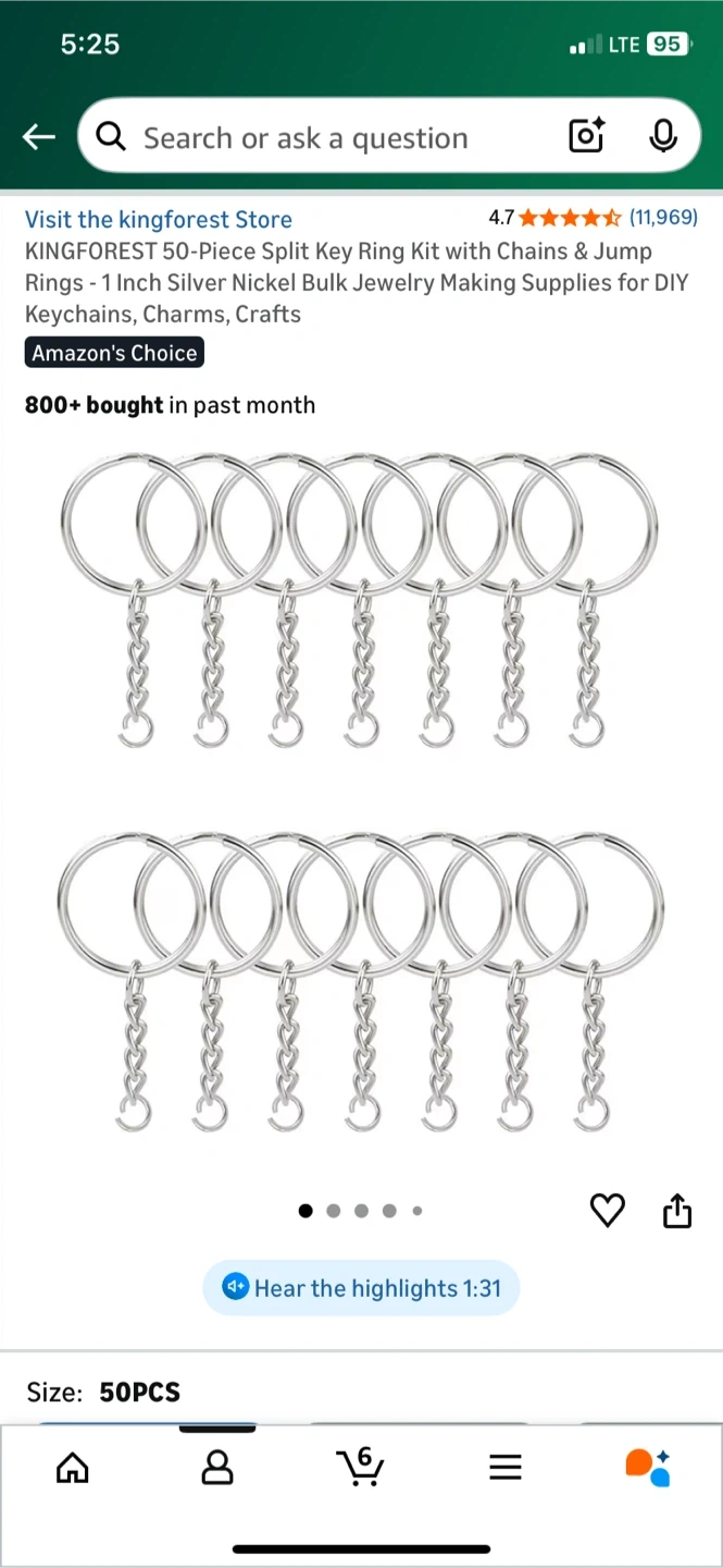 Selling a KINGFOREST Split Key Ring Kit with Chains & Jump Rings. It's a 1-inch silver nickel bulk jewelry making supply for DIY Keychains, Charms, and Crafts.
