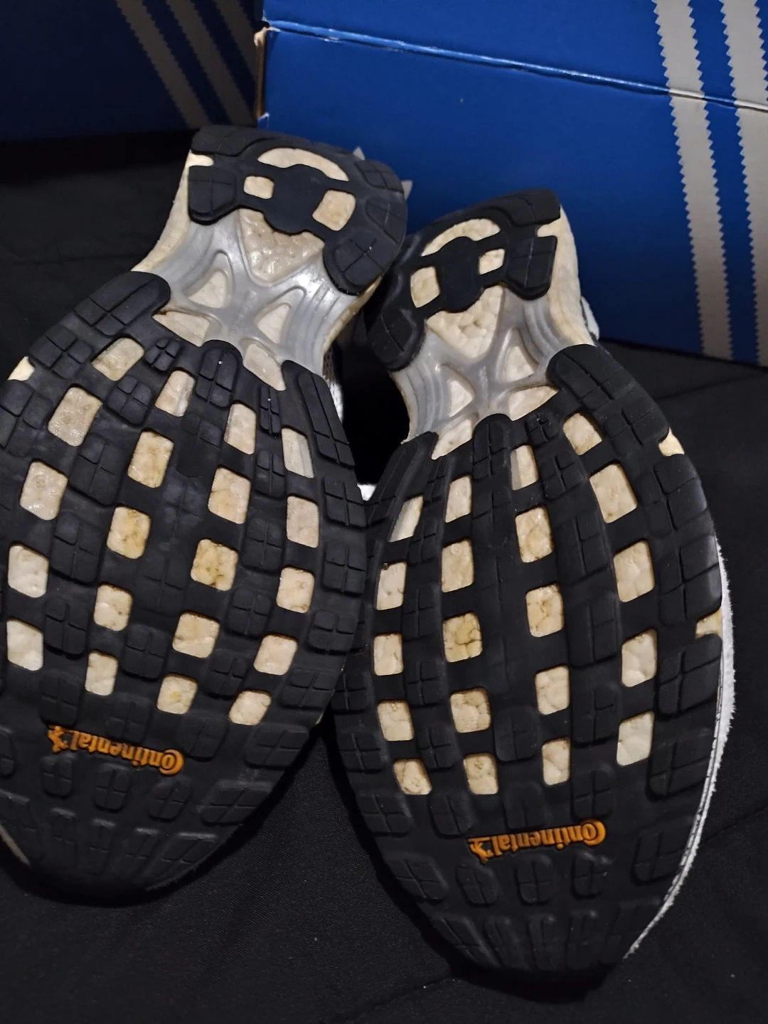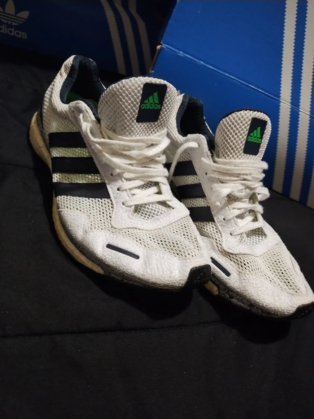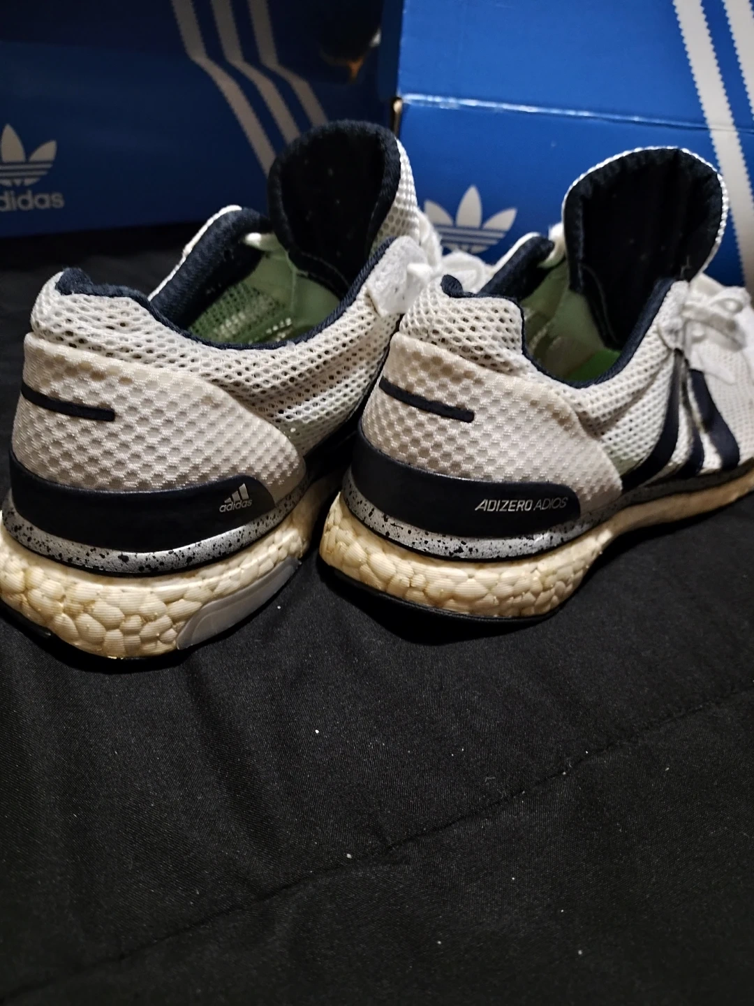 Selling a pair of Adidas Adizero Adios running shoes. They show some signs of wear, but still have plenty of miles left in them. The soles have Continental rubber for great grip.