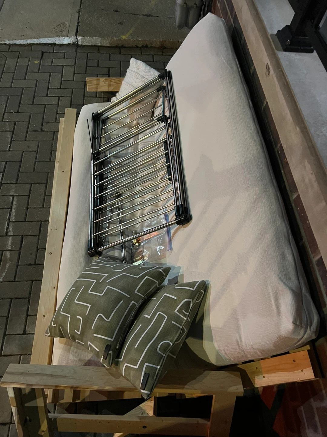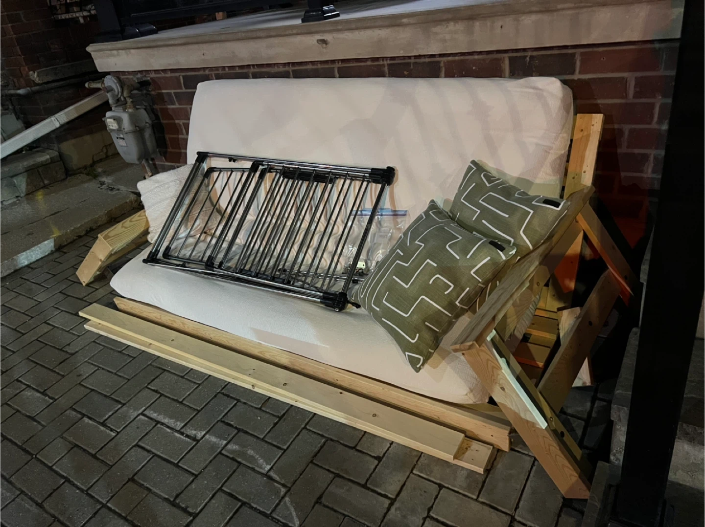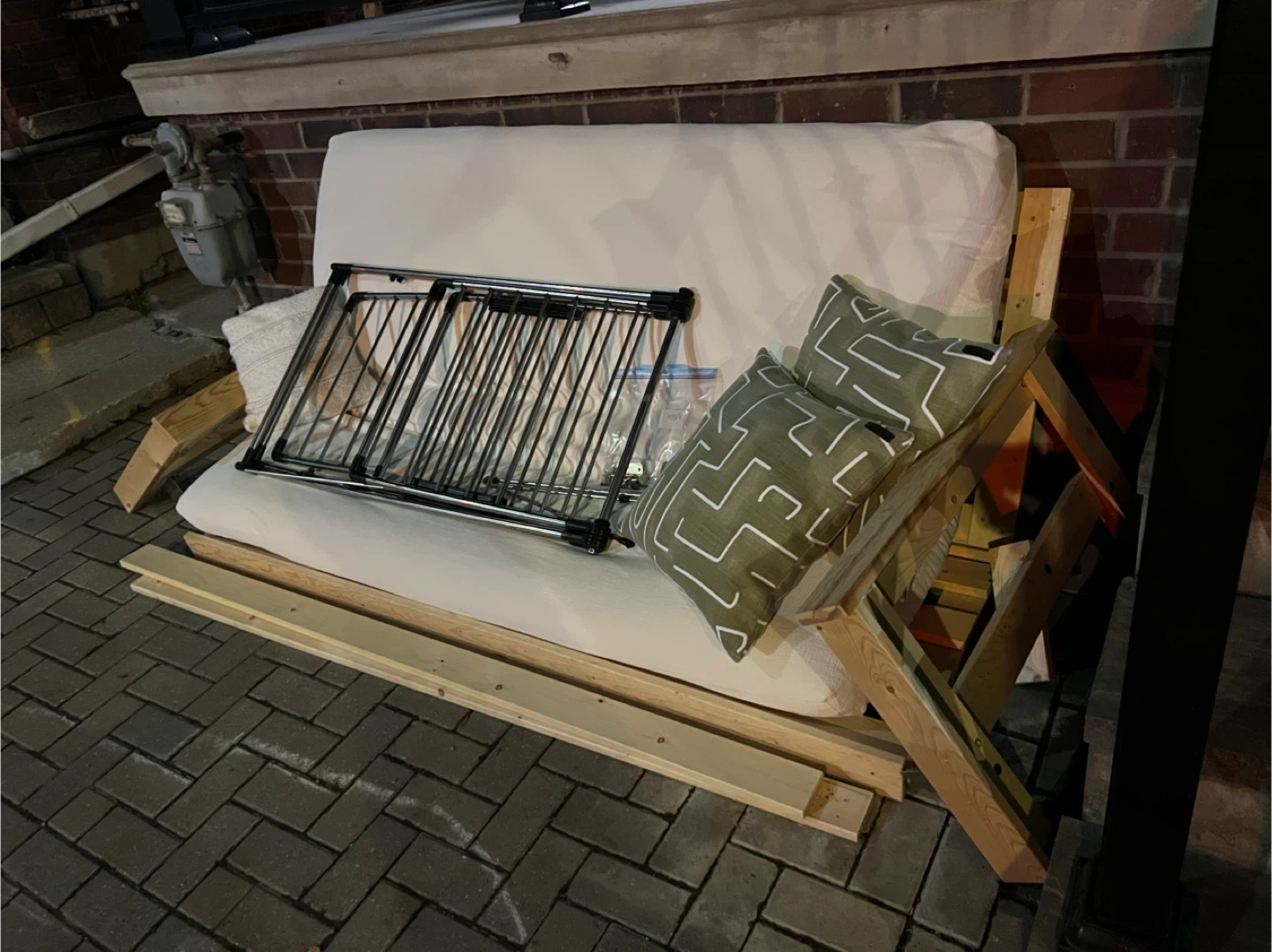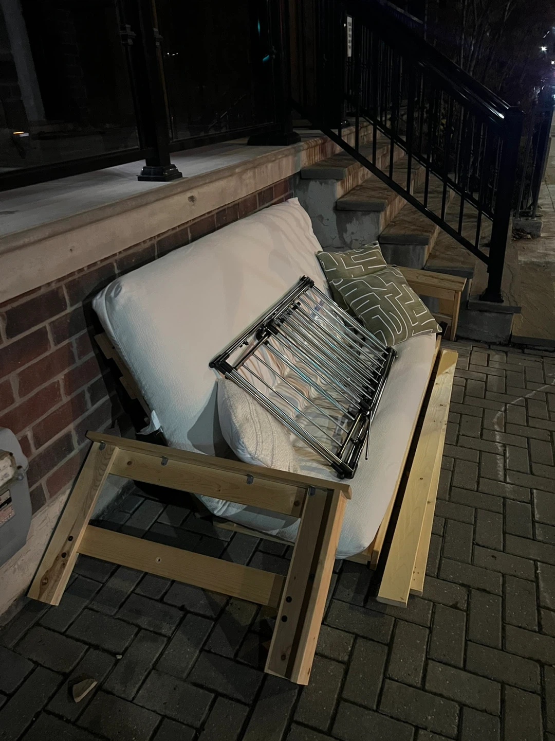 ** Edit: Only the white futon cushion is left on our stoop **