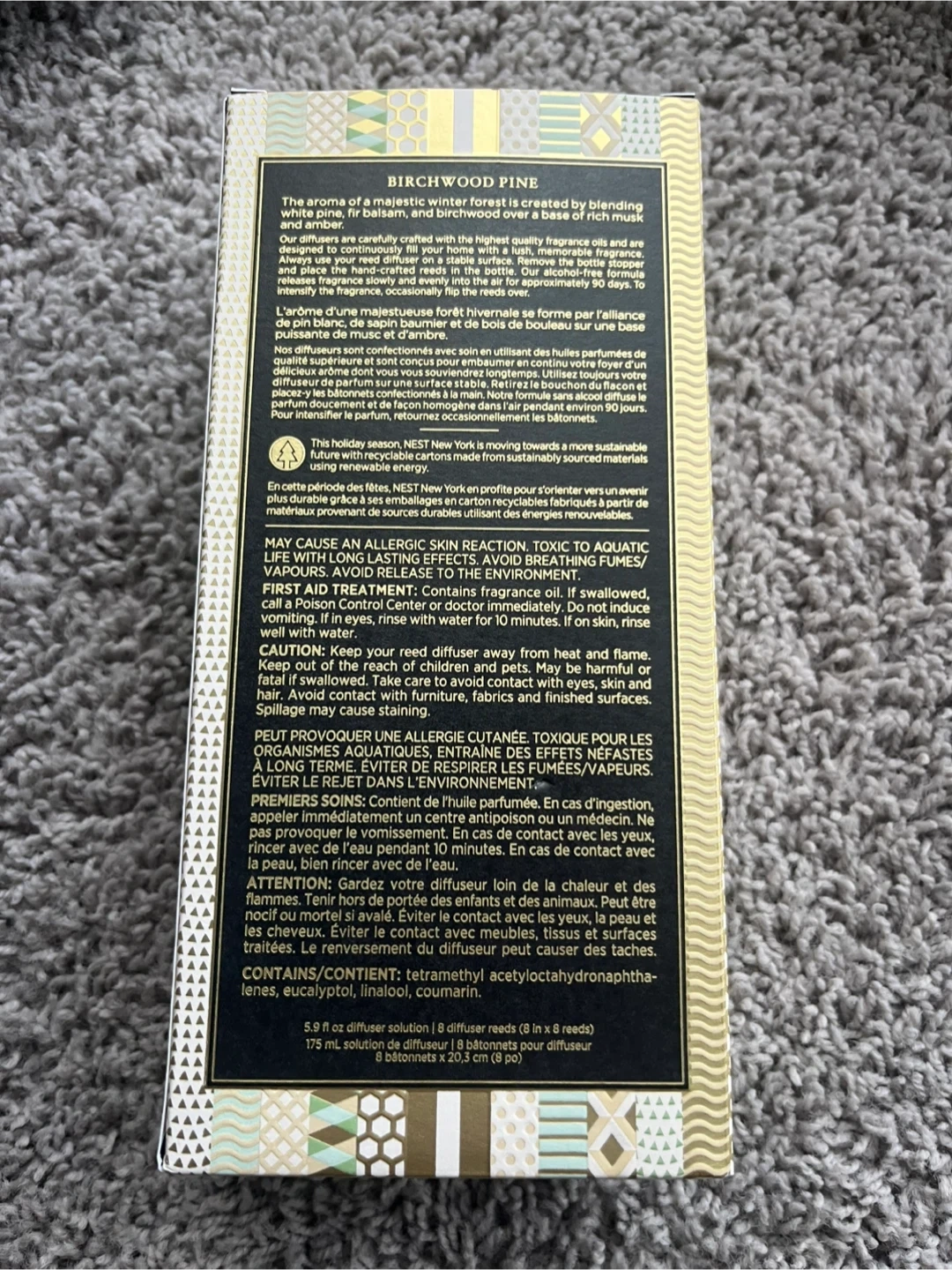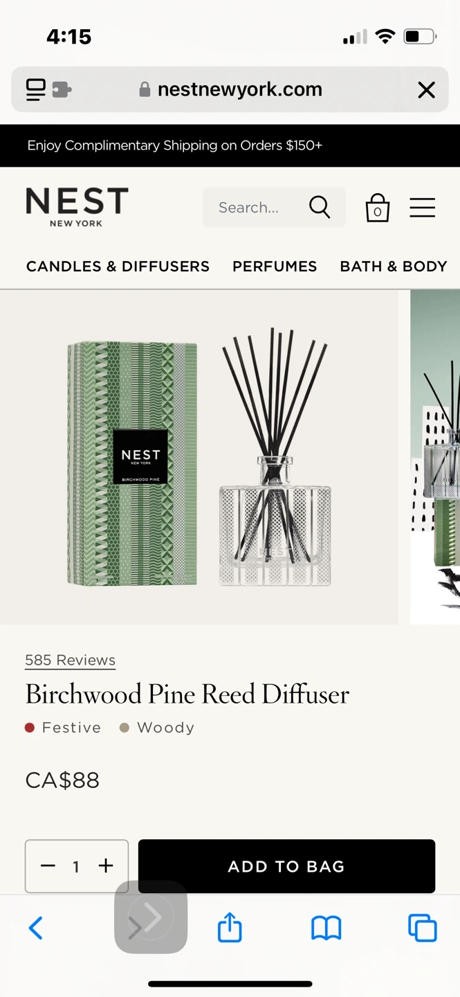 Freshen up your space with this NEST New York Birchwood Pine Reed Diffuser! The aroma is a majestic forest blended with white fir, balsam, and birchwood over a base of musk and amber. Includes 8 reed sticks and 5.9 fl oz (175 mL) of diffuser solution. Originally bought for CA$88