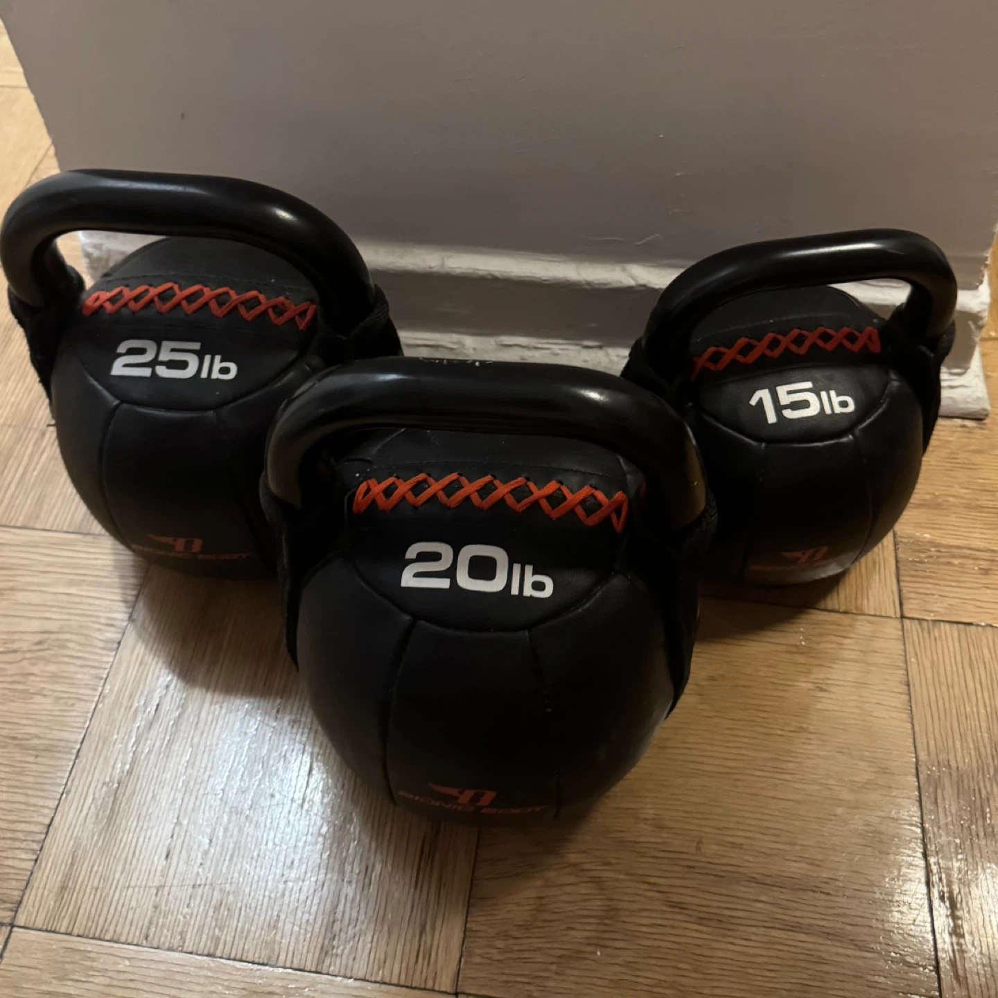 Selling a set of Bionic Body kettlebells in great condition! Includes a 25lb, 20lb, and 15lb kettlebell. Perfect for at-home workouts and strength training.