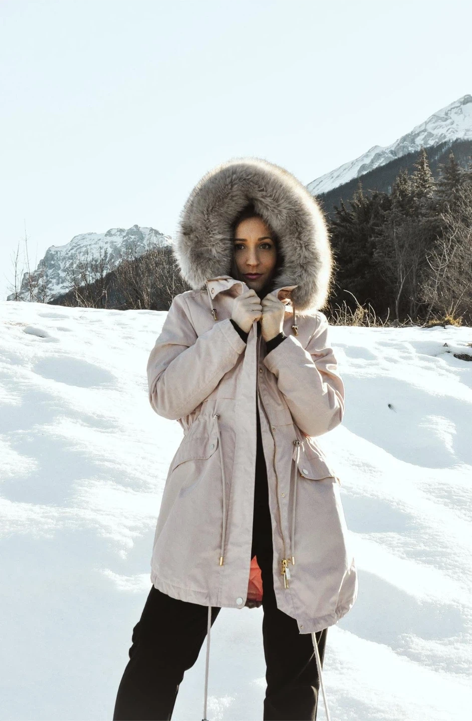 Parka London 2-in-1 jacket in light gray. Water resistant outer fabric, with faux fur lining. Hood trim and lining can be easily removed in warmer weather. Drawstring waist for a more tailored fit.