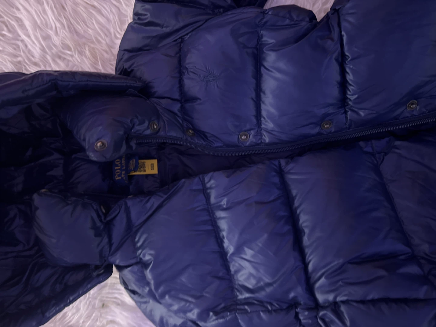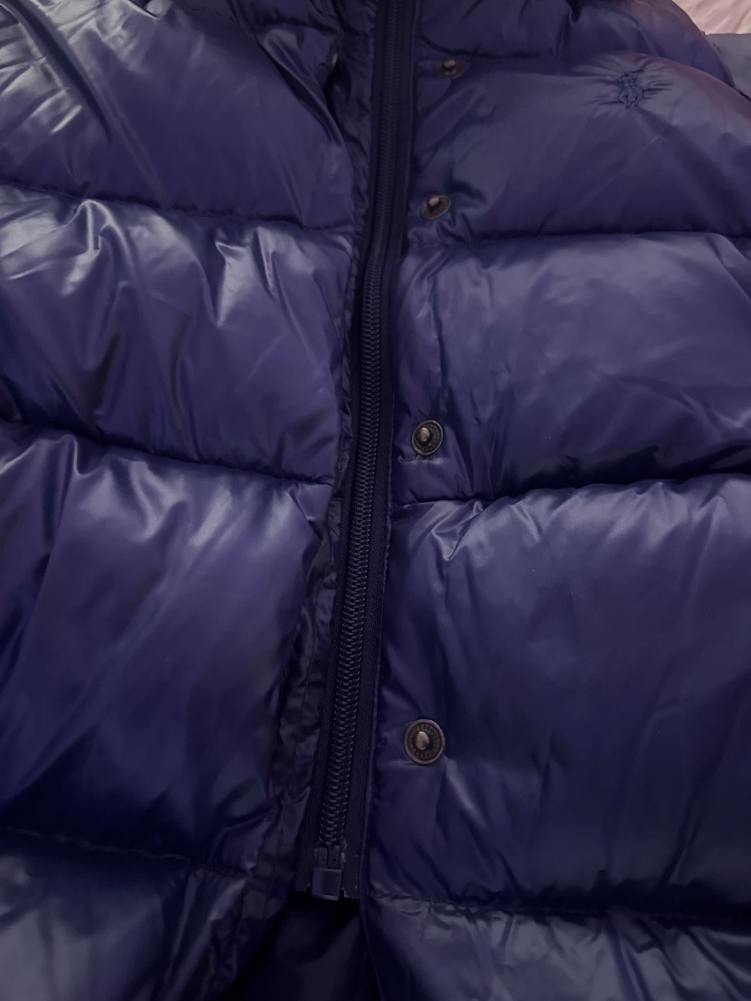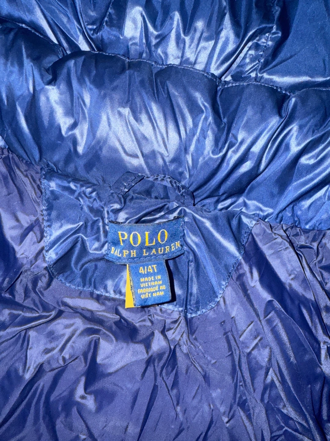 Selling a Polo Ralph Lauren puffer jacket in navy blue. It's in great condition and perfect for keeping your little one warm! The size is 4/4T.