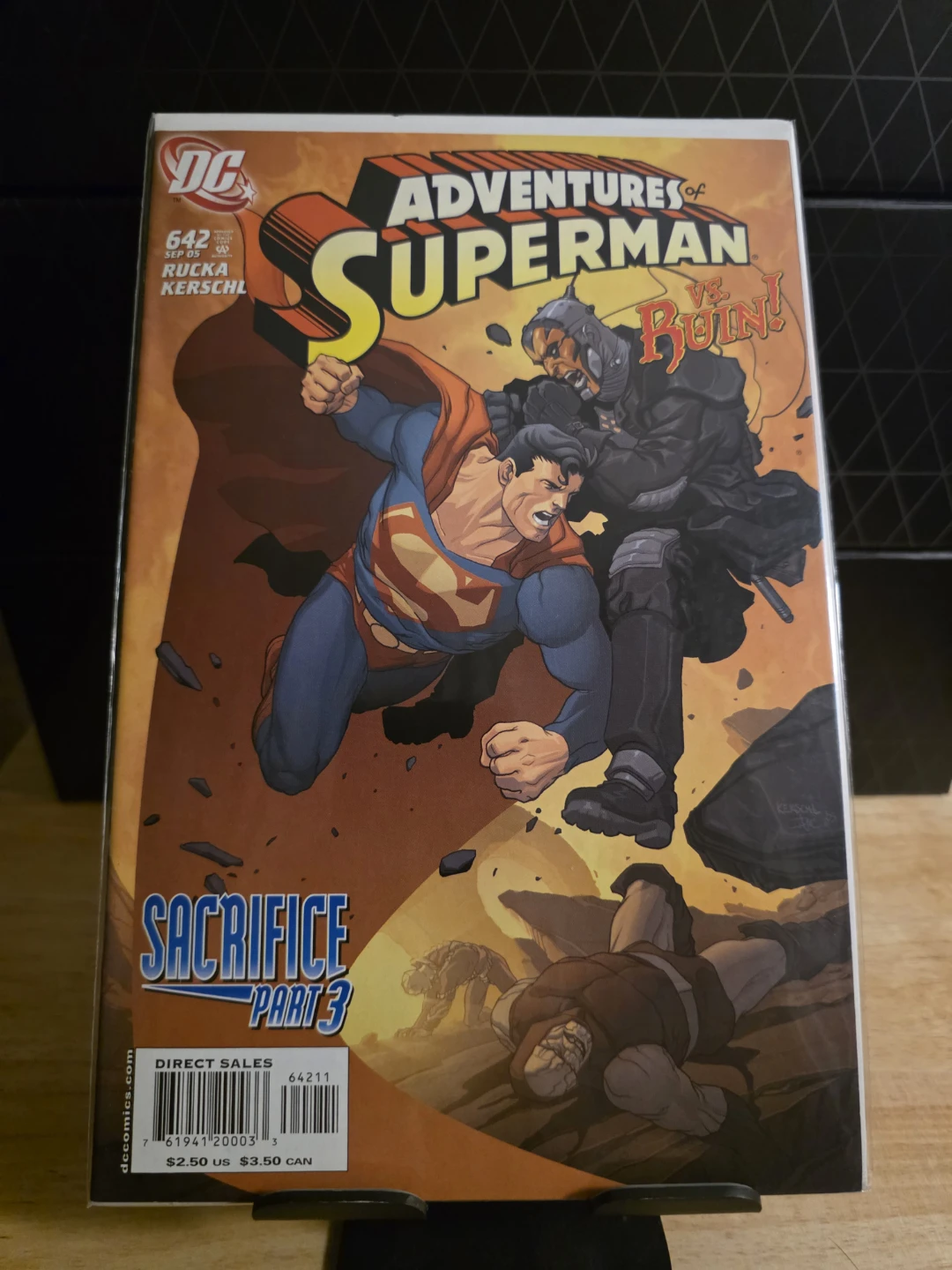 Selling Adventures of Superman #642 comic book. It's from September 2005 and features the story arc 'Sacrifice Part 3'. A great addition for any comic book collector!