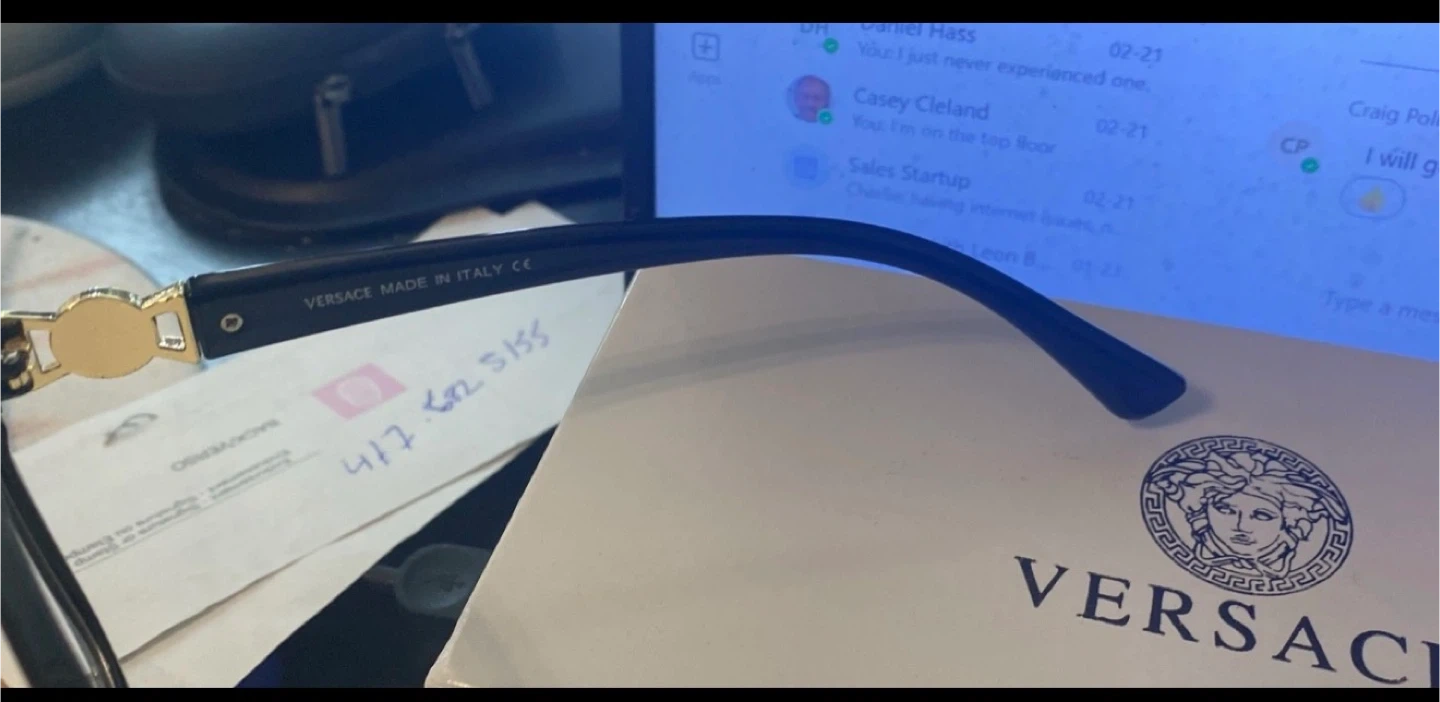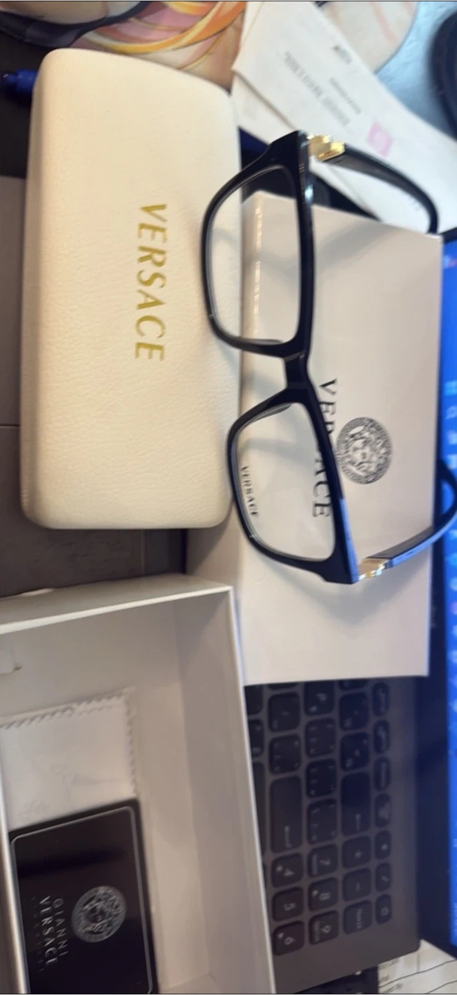 Selling a pair of Versace eyeglasses in black! They come with the original Versace case and box, so they're well-protected. These glasses have a stylish design and are in great condition, ready for a new home