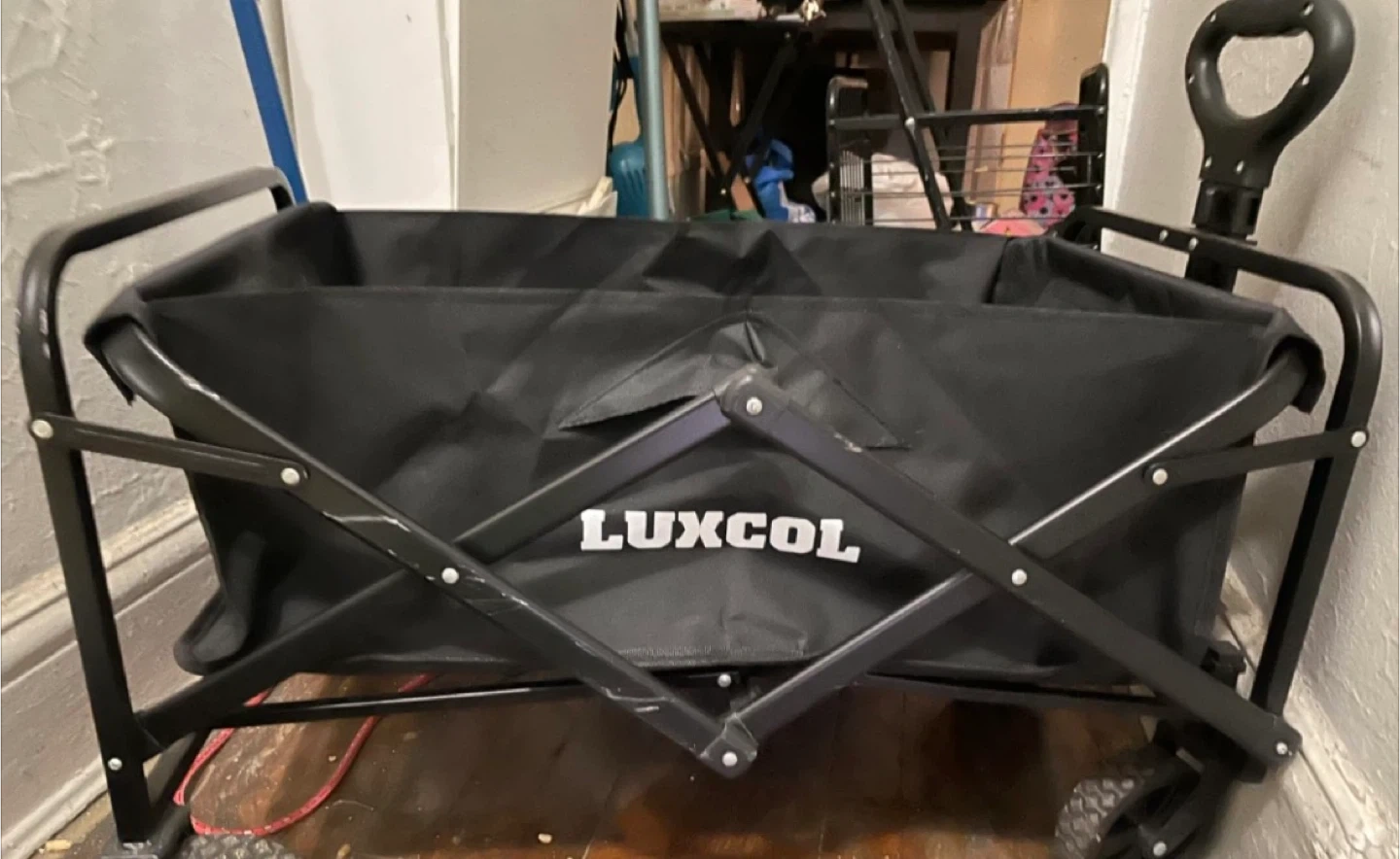 I'm selling a mildy USED LUXCOL very clean Collapsible Folding Outdoor Utility Wagon! I bought this for $65 in amazon. Selling for less coz I need to de clutter. Comes with the liner.