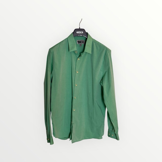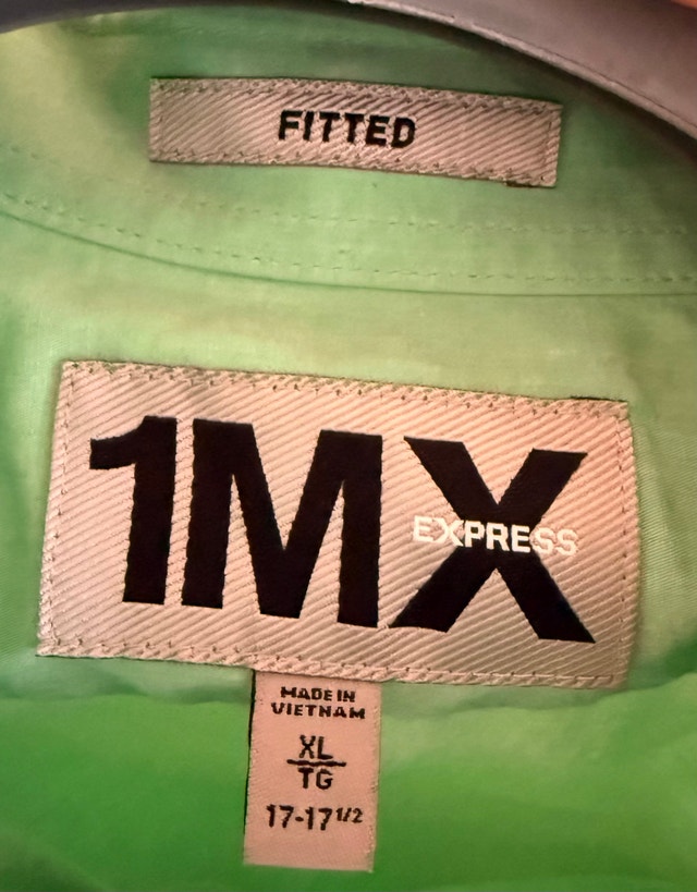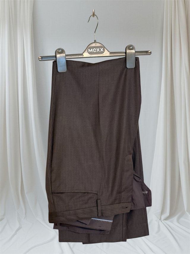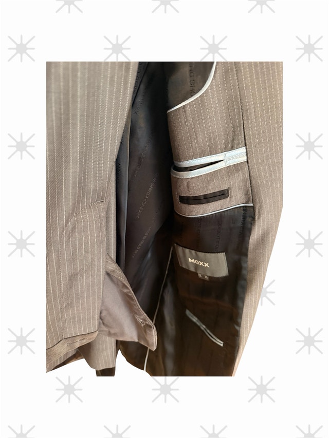 Only worn once because they are too small for me and I never lost enough weight. Jacket is 44 Regular. Pants are 38 Slim. Shirt is an XL slim so fits more like a large. Pants would need to be hemmed for your height, if needed.