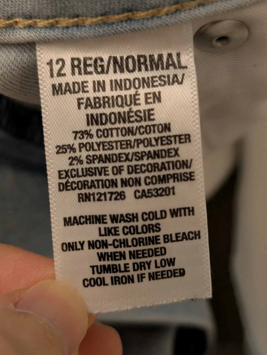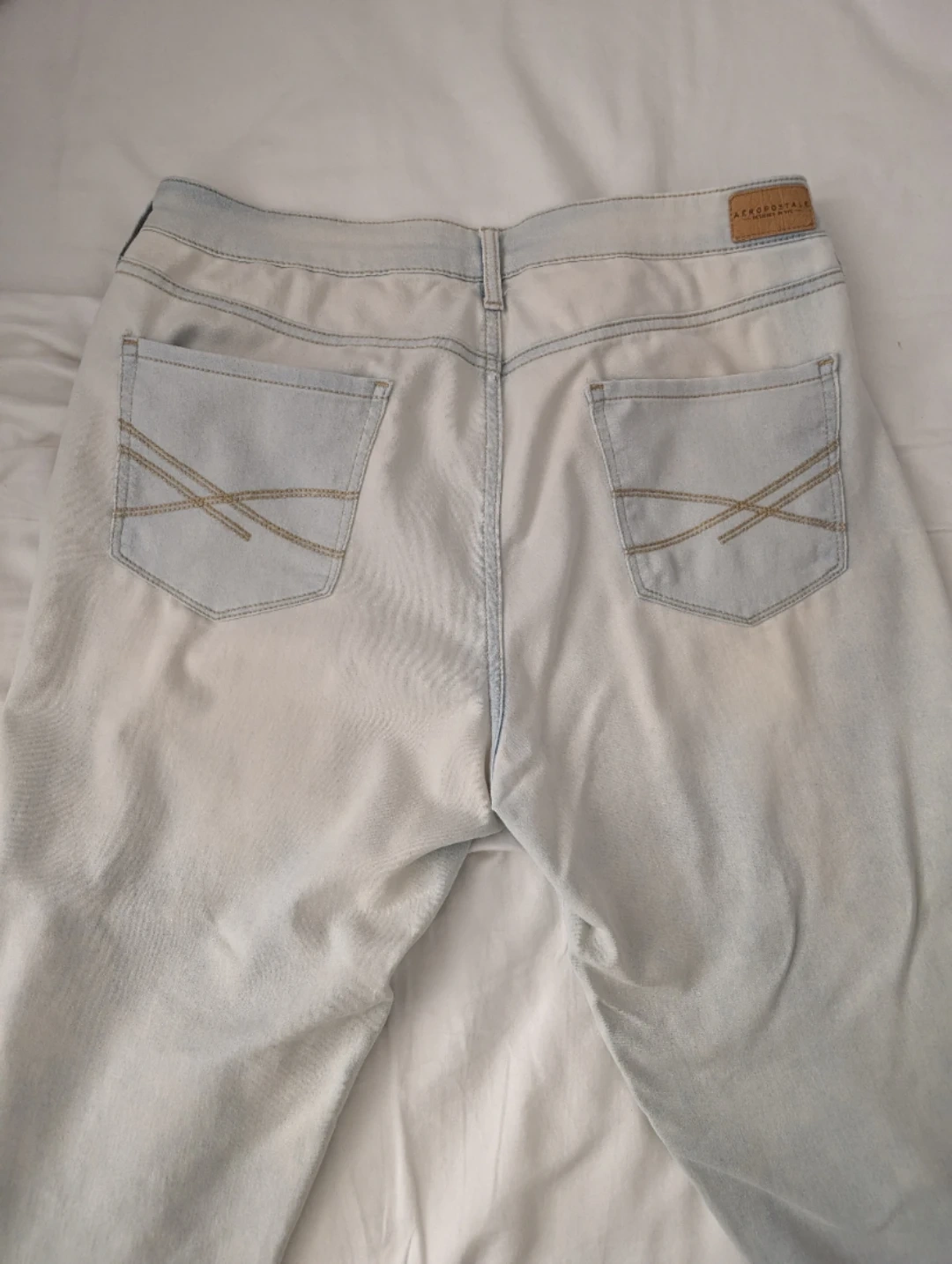 Selling a pair of Aeropostale high-waisted jeggings in size 12. They are made of 73% cotton, 25% polyester, and 2% spandex. Easy to care for, just machine wash cold with like colors and tumble dry low.