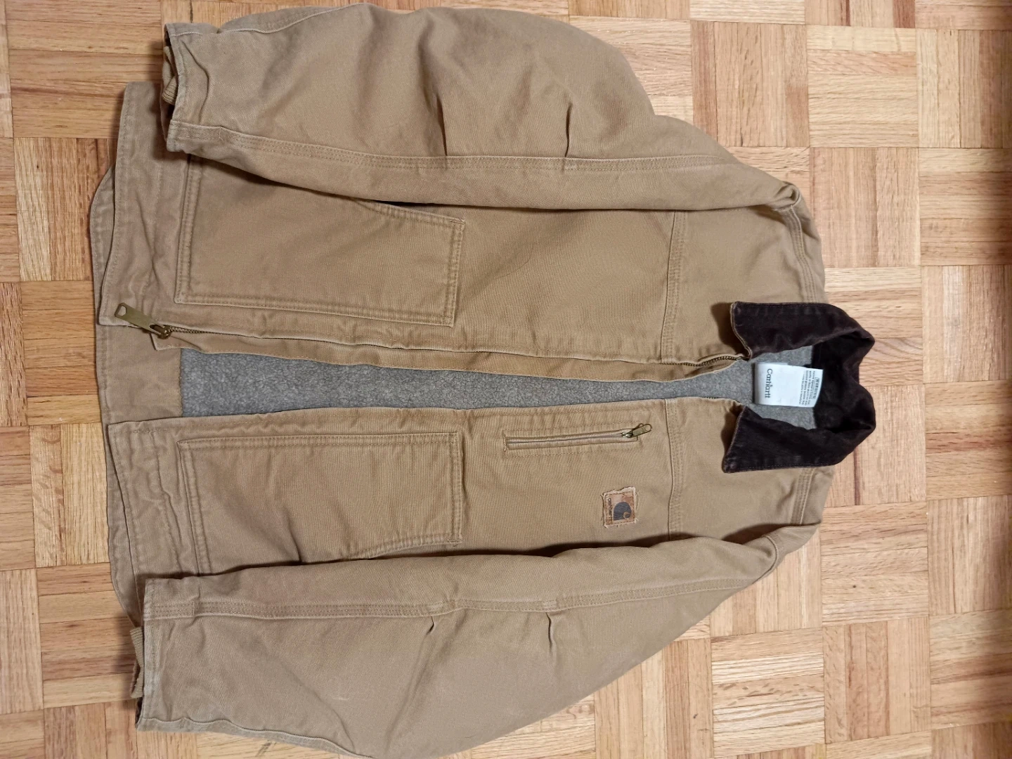 I'm selling a Carhartt Sandstone Duck Active Jacket in size large. It's in great condition and ready for a new home! The jacket features a durable sandstone duck outer layer and a warm quilted lining, perfect for those cooler days. It's a classic Carhartt piece that's both stylish and functional.