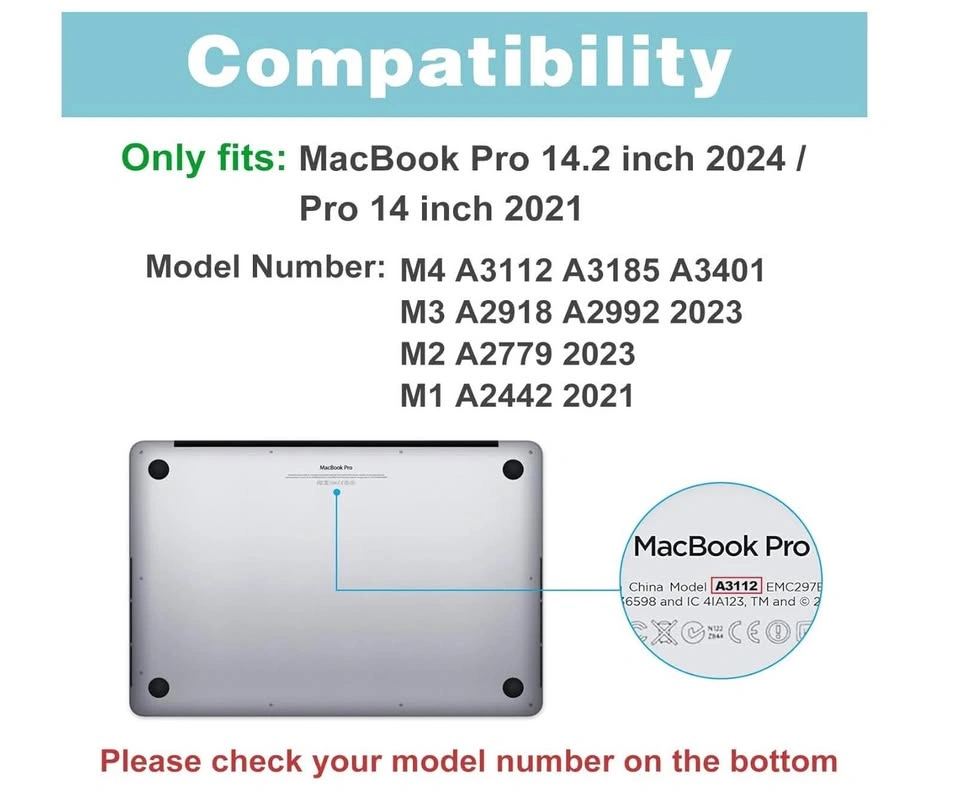 This ProCase Slim Protective Hard Shell Case + Keyboard Cover fits the MacBook Pro 14-inch (M4, M3, M2, M1) models for 2024, 2023, and 2021.