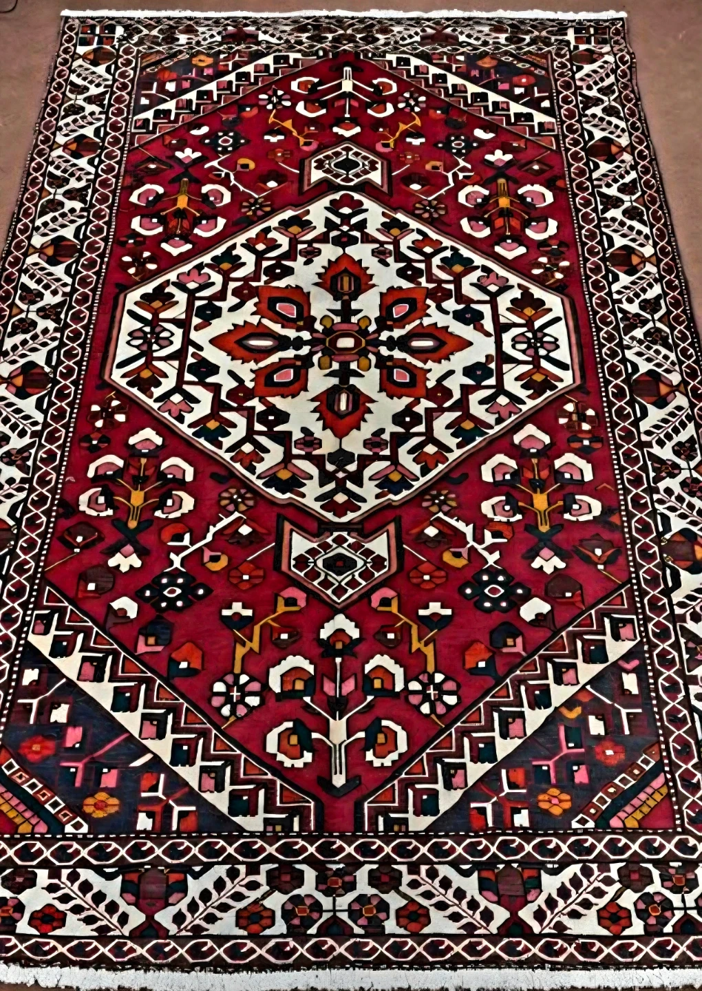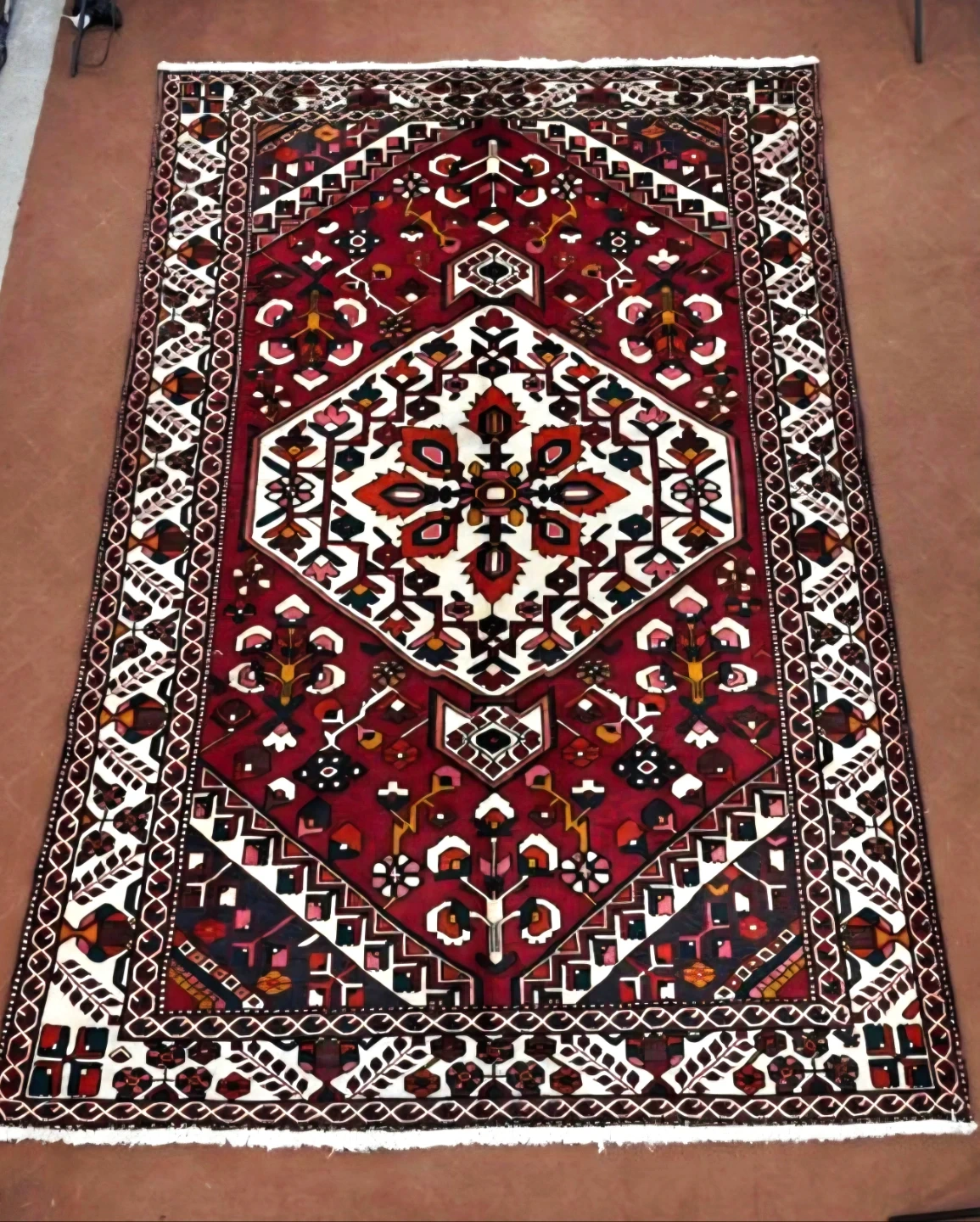 Authentic large hand-knotted 100% sheep wool Persian rug handmade in Bakhtiyar region of Iran.
