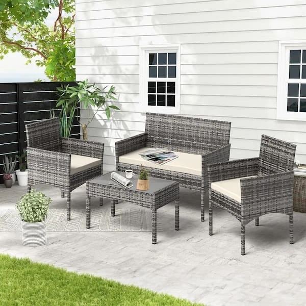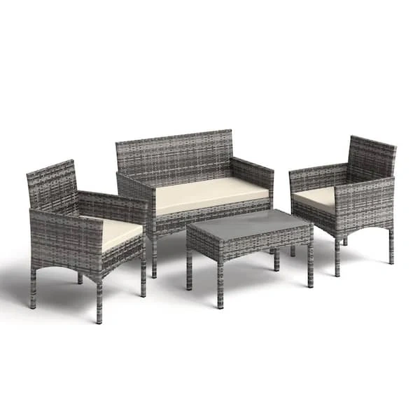 I'm selling a gray wicker patio furniture set. It's perfect for arranging pieces to fit larger or smaller spaces. This set includes a loveseat, two chairs, and a coffee table. Add a touch of comfort and style to your outdoor area!Pickup near Harlem and Devon Chicago 60631