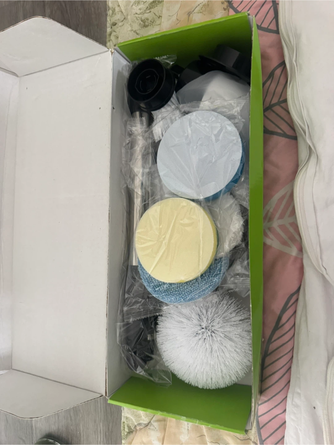 I'm selling a brand new, multi-function electric cleaning brush! It comes in the original box and includes all the components.