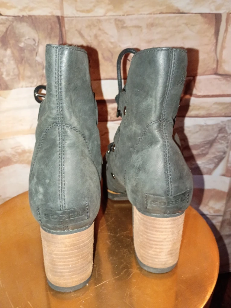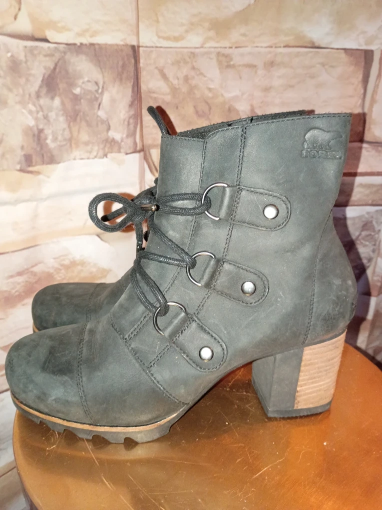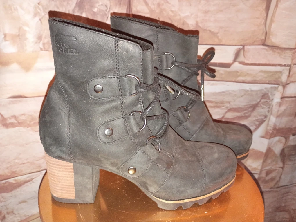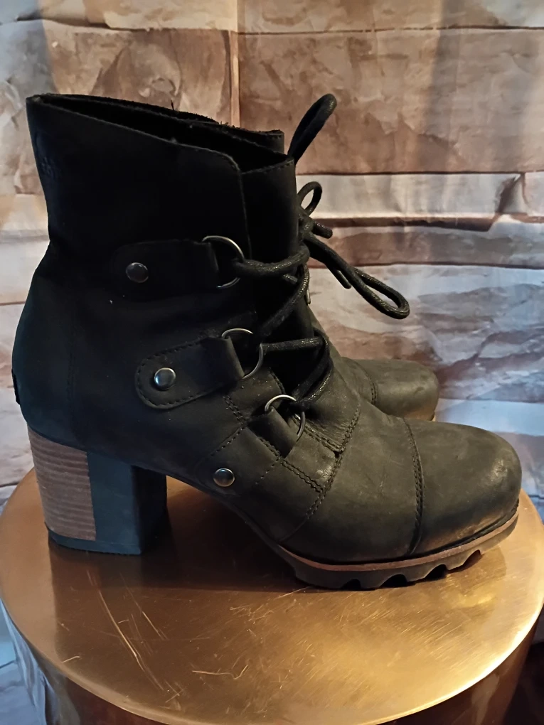 Sorel Black Leather Heeled Ankle Boots sz 9
