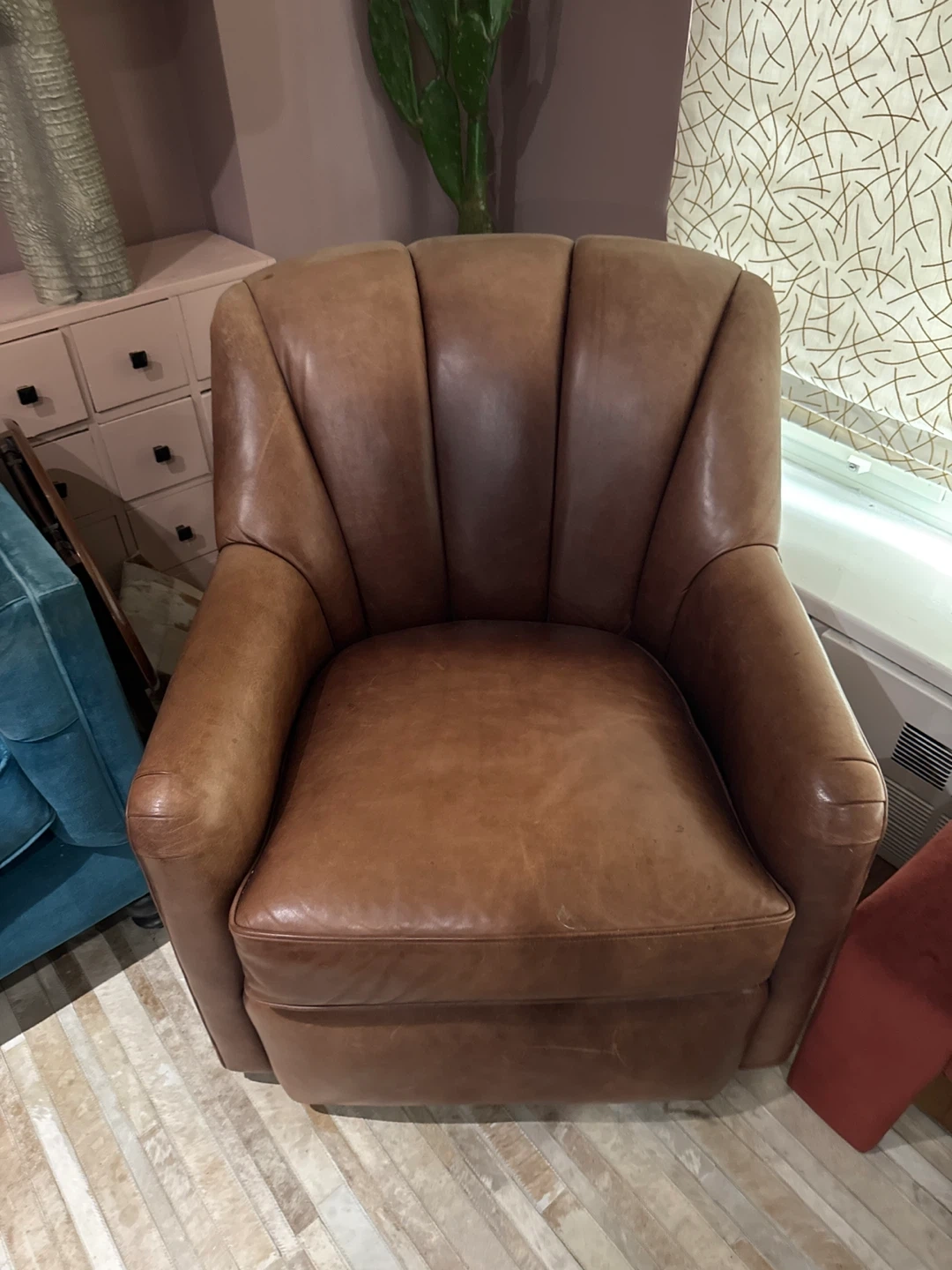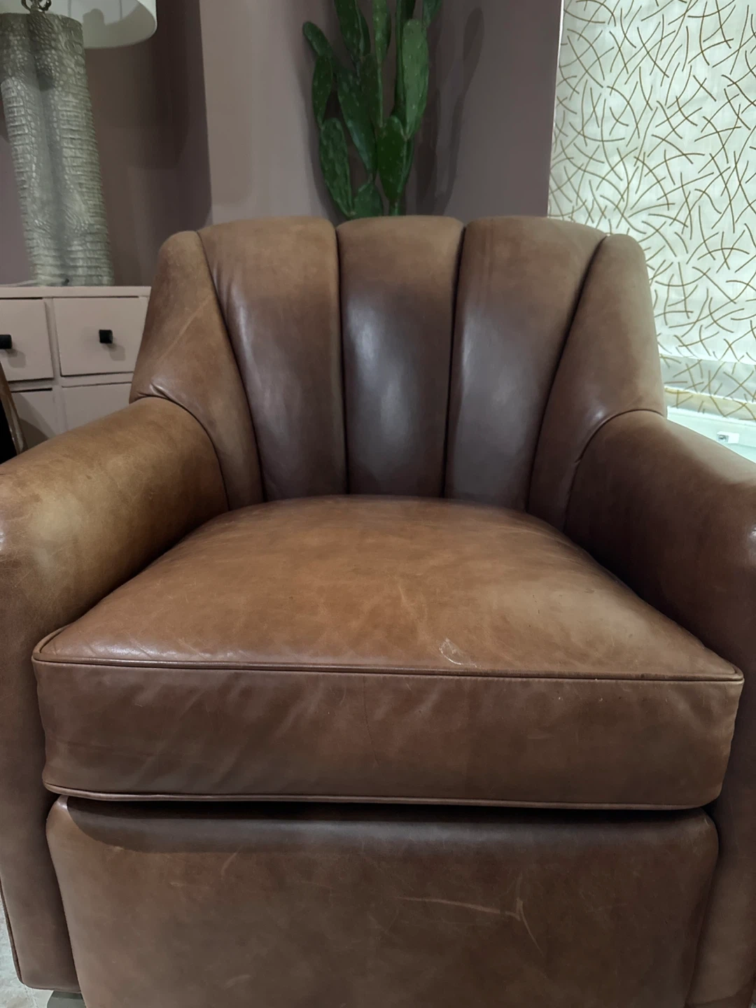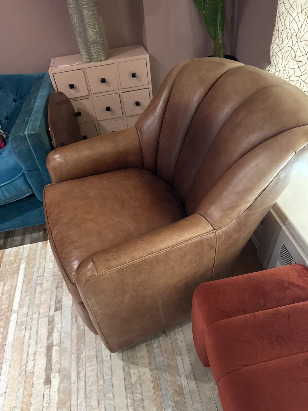 Selling a comfortable brown leather swivel armchair. It's perfect for any living room or reading nook. The chair is in good condition and ready for a new home!