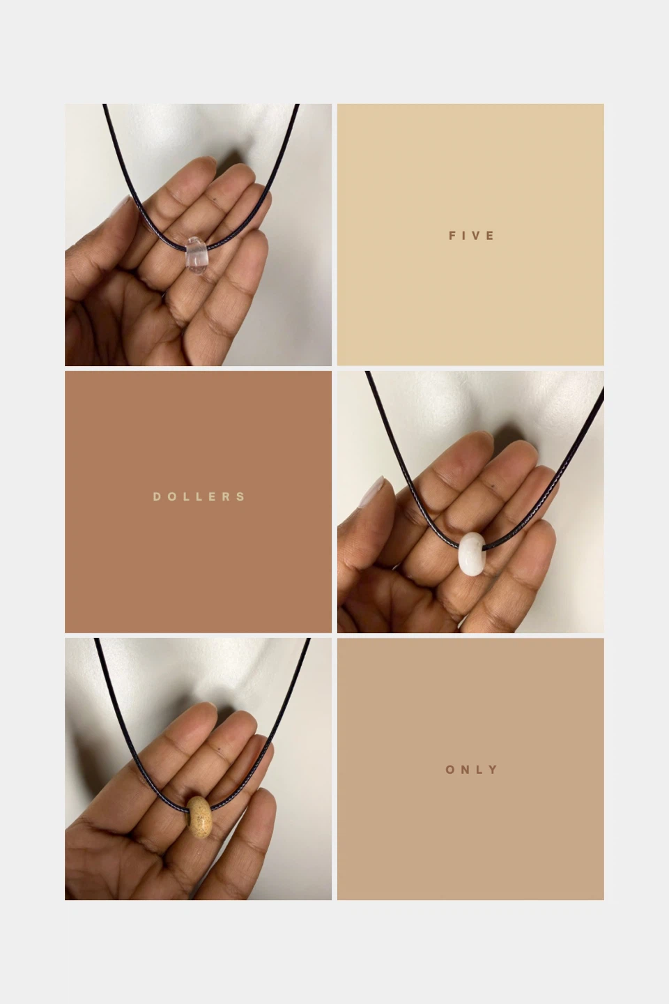 These are handmade natural stone pendant necklaces! They're simple and cute, perfect for adding a little something to any outfit. Each necklace features a unique gemstone pendant on a black cord.
