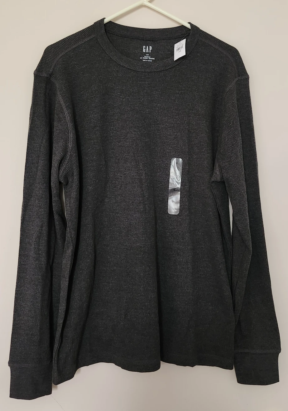 I have a brand new GAP waffle knit long sleeve mens shirt for sale. It's a size large and in a dark grey colour. Never worn and still has the tags attached!