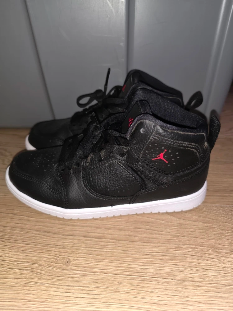 Selling a pair of Jordan Jumpman sneakers in black! They're in great shape and ready for a new home. The iconic Jumpman logo is featured in red, adding a nice pop of colour to the sleek black design