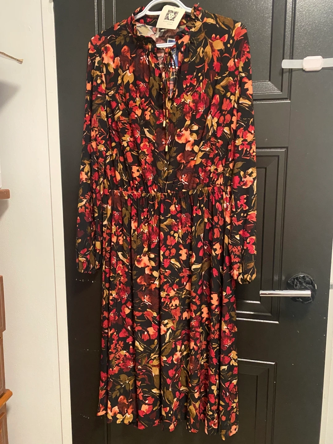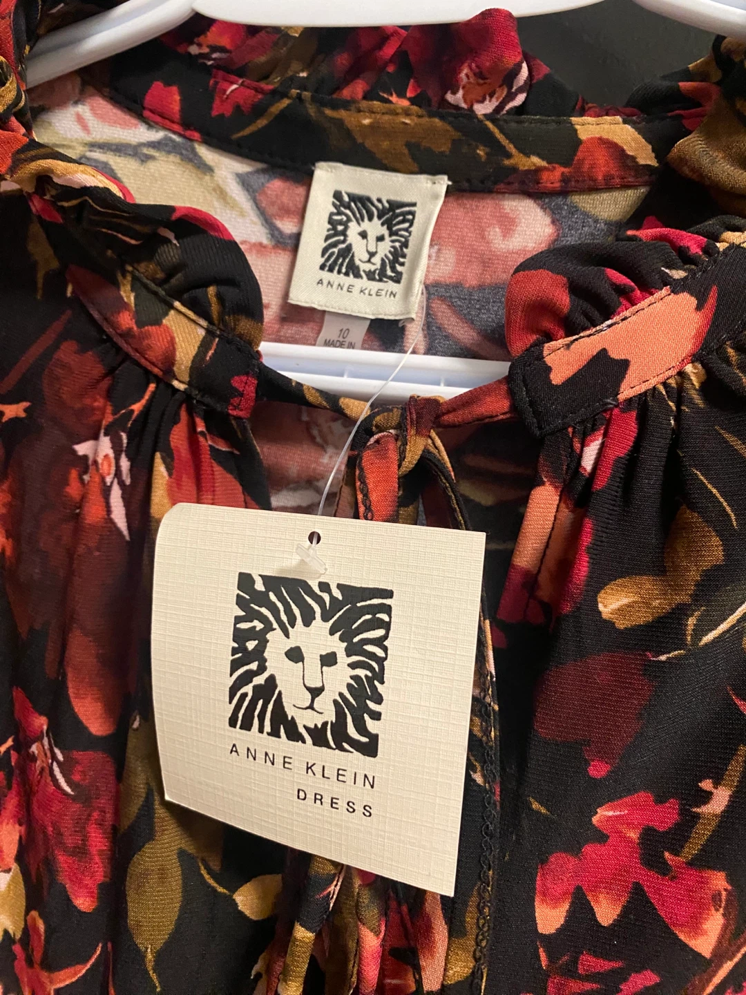 This Anne Klein dress is new with tags and features a beautiful black multi-floral pattern in a size 10, perfect for any occasion!