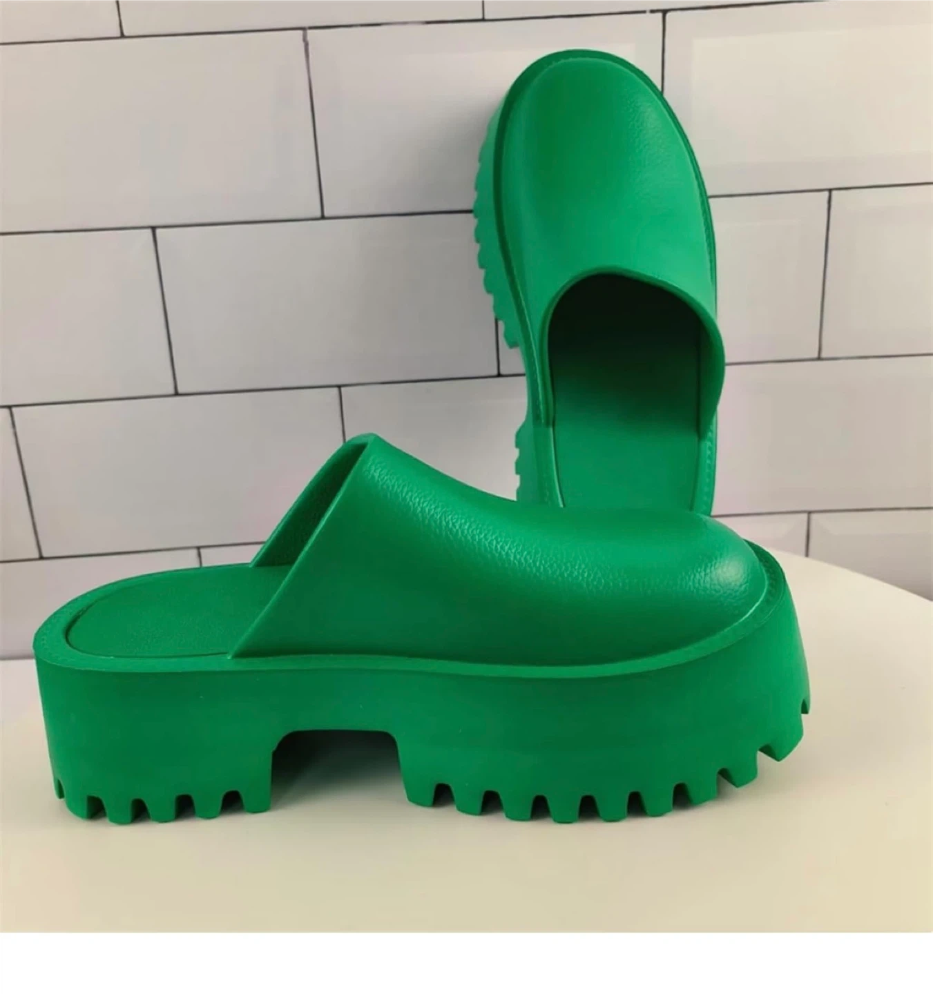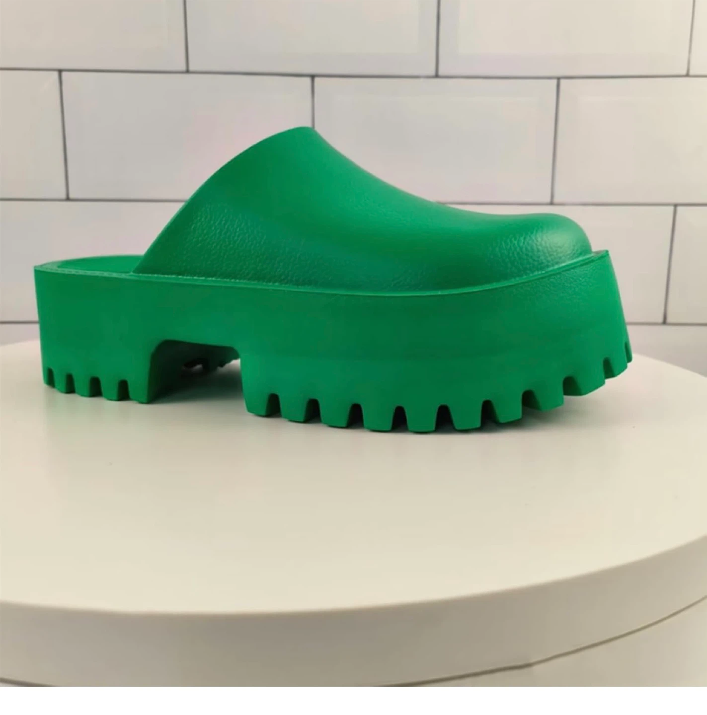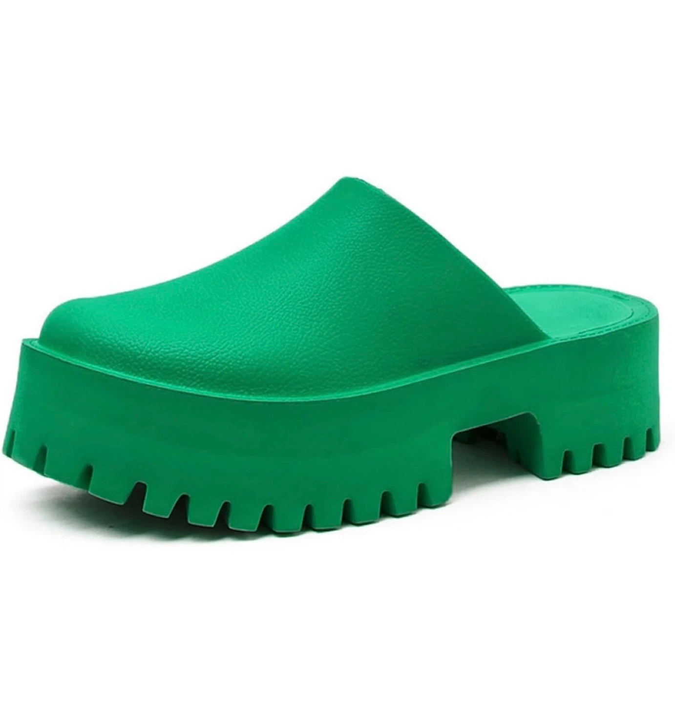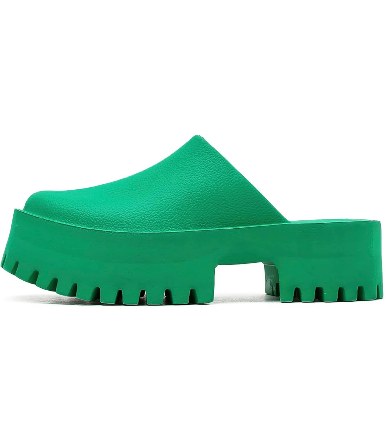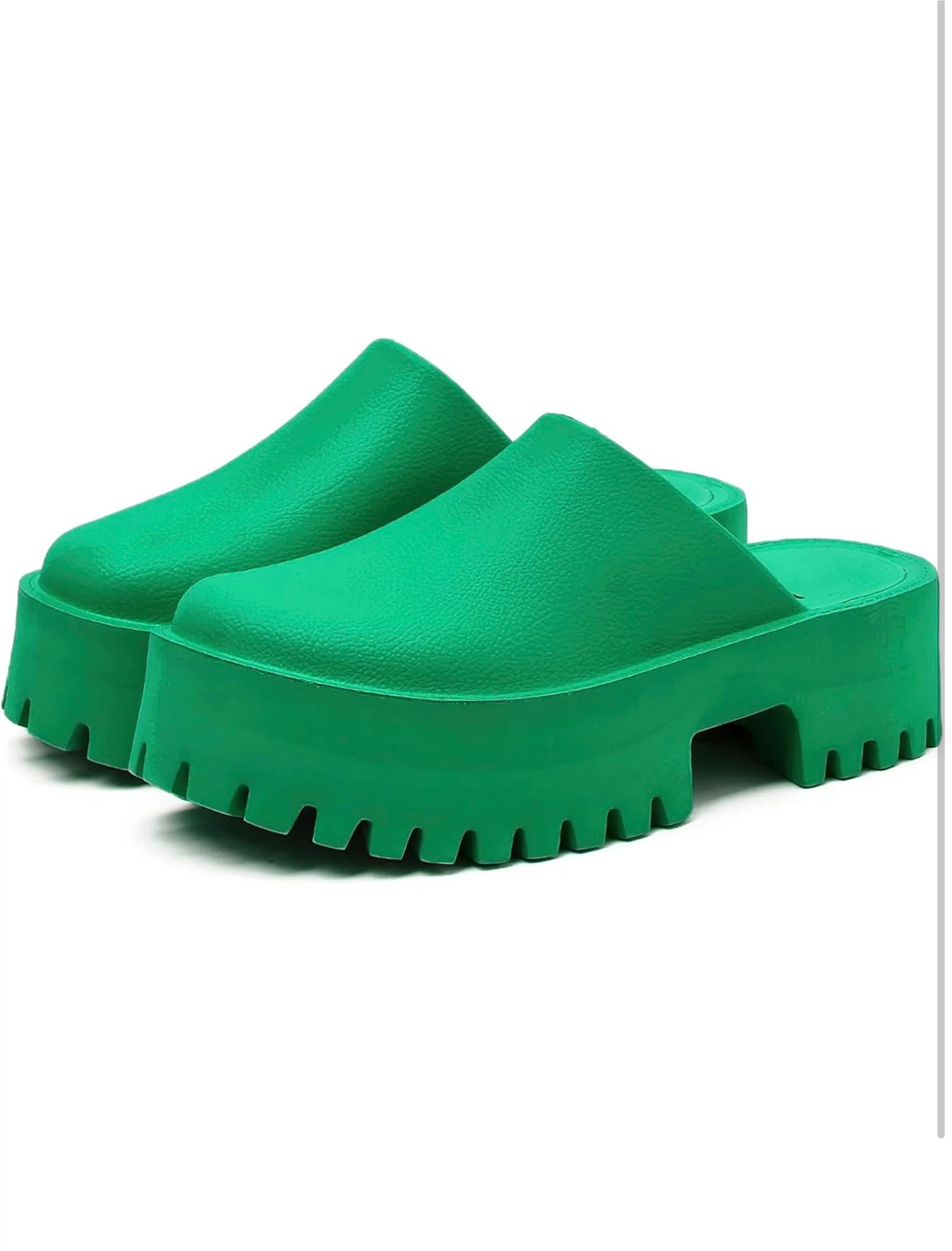 These green platform clogs are a unique and stylish addition to any wardrobe! They feature a chunky sole and a slip-on design, perfect for adding some height and a pop of color to your look