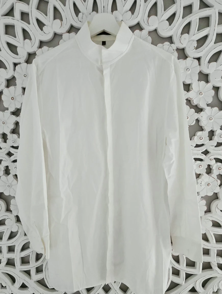 Selling a Shiatzy Chen white shirt. It's in great condition and is a size 50.