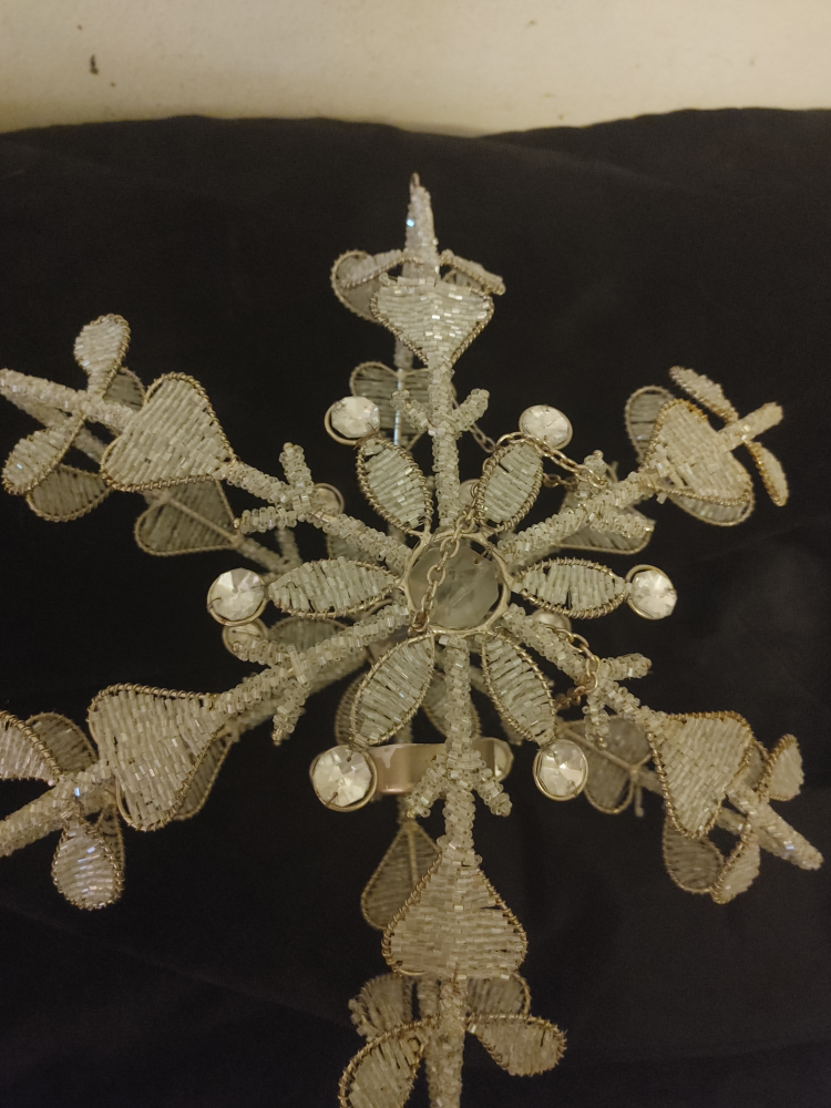 Add a touch of sparkle with this beautiful beaded snowflake tree topper! It's in great condition and ready to bring some holiday cheer to your home