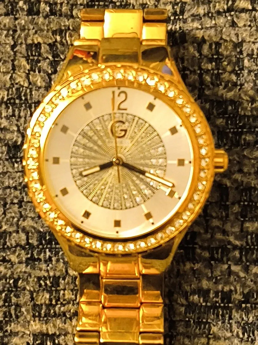 Selling a beautiful gold Guess women's watch! It has a lovely design with sparkling accents around the face. A stylish accessory to add a touch of glam to any outfit