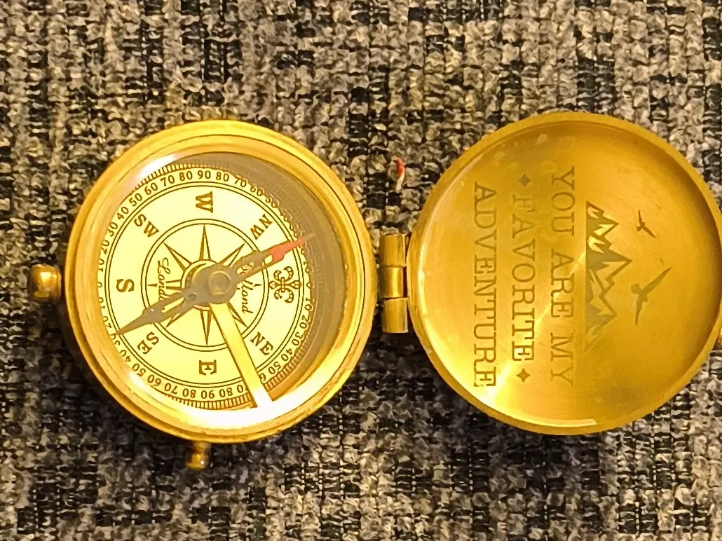 Selling a Londond compass with the inscription 'You are My Favorite Adventure' on the inside cover. It's a beautiful piece for anyone who loves exploring!
