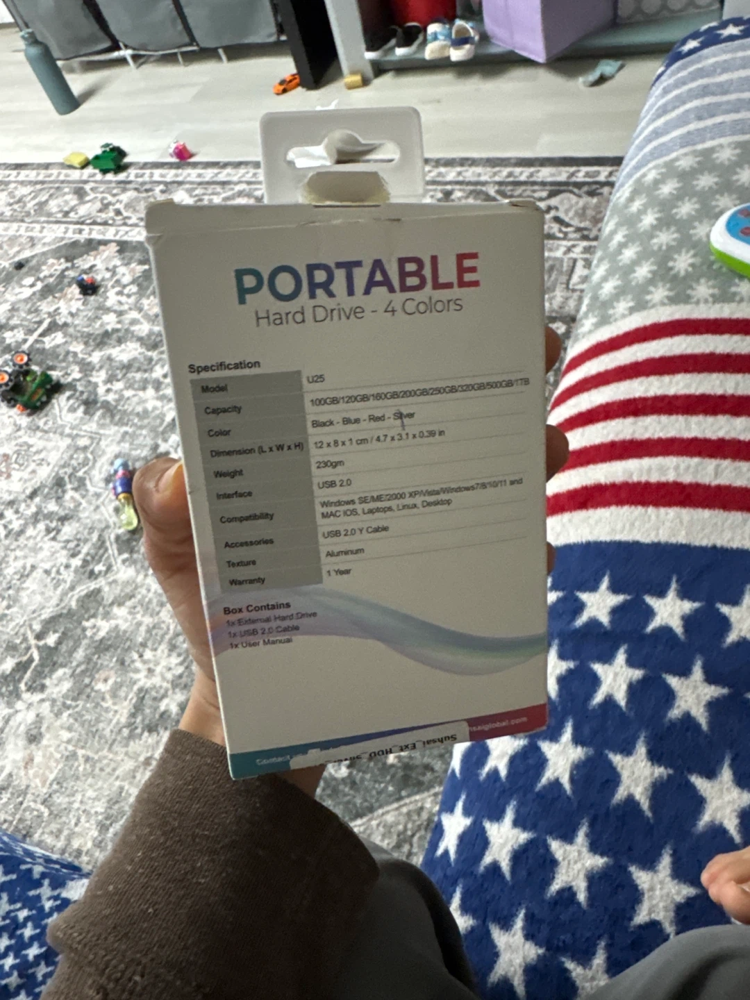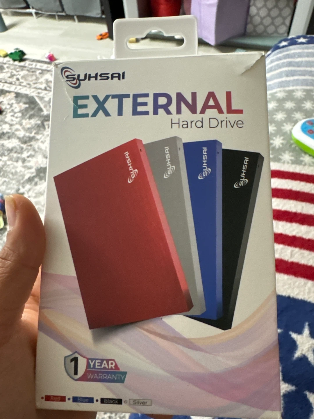 Selling a SUHSAI external portable hard drive 1tb.It comes in its original box and has a 1-year warranty.