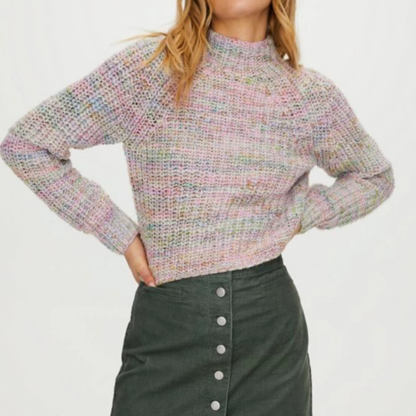 Cozy up in this Wilfred Free sweater! It's a size XS and made of 75% acrylic and 25% wool. Perfect for adding a pop of colour to your wardrobe with its unique blend of pastel shades pick up Dupont/Dufferin
