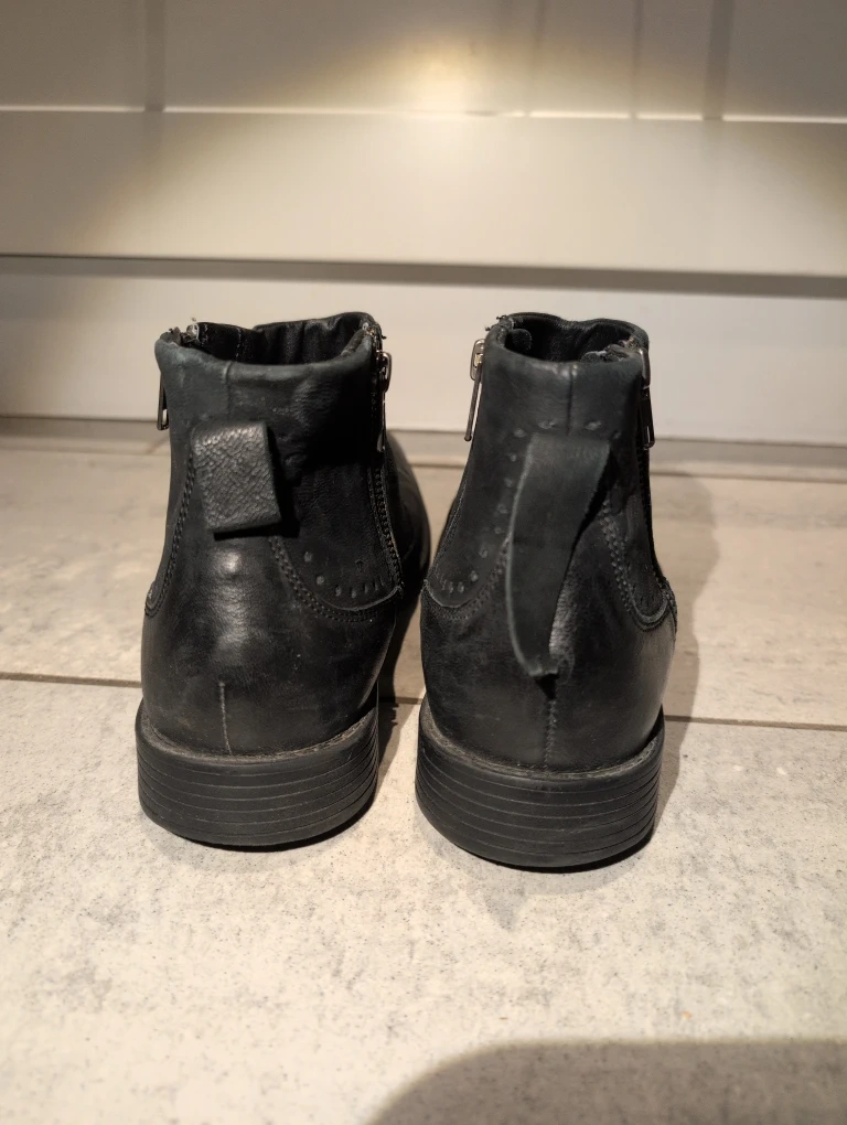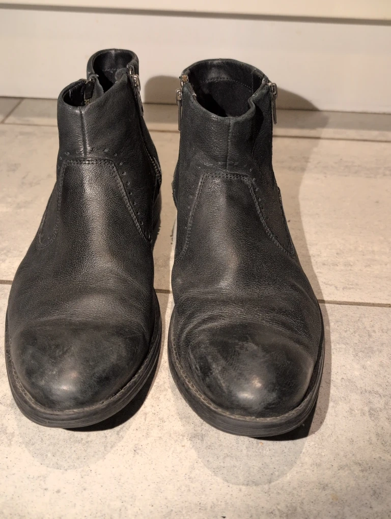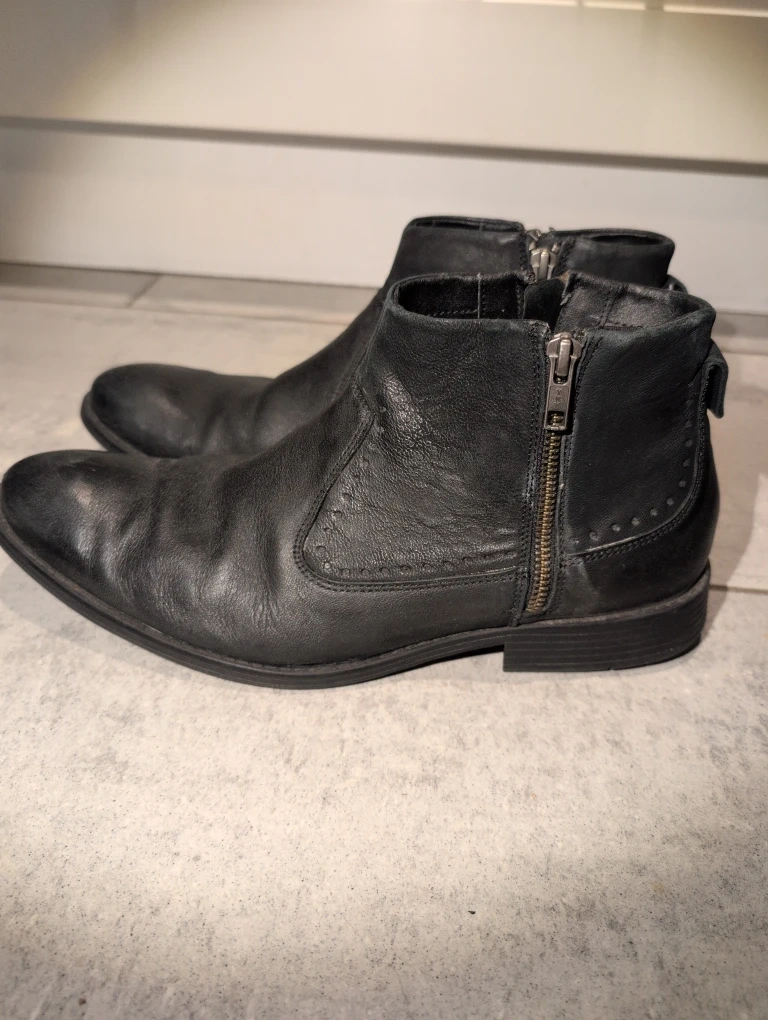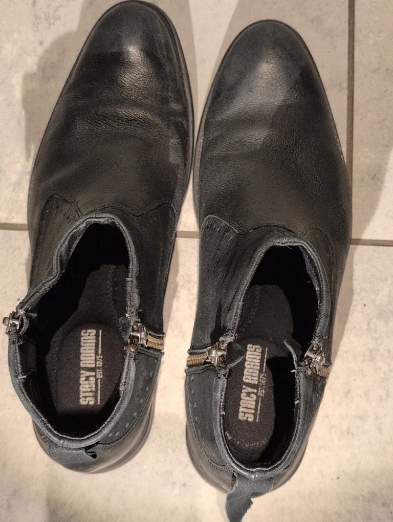 Selling a pair of Stacy Adams ankle boots in black leather. They have a side zipper for easy on and off. Great for everyday wear!