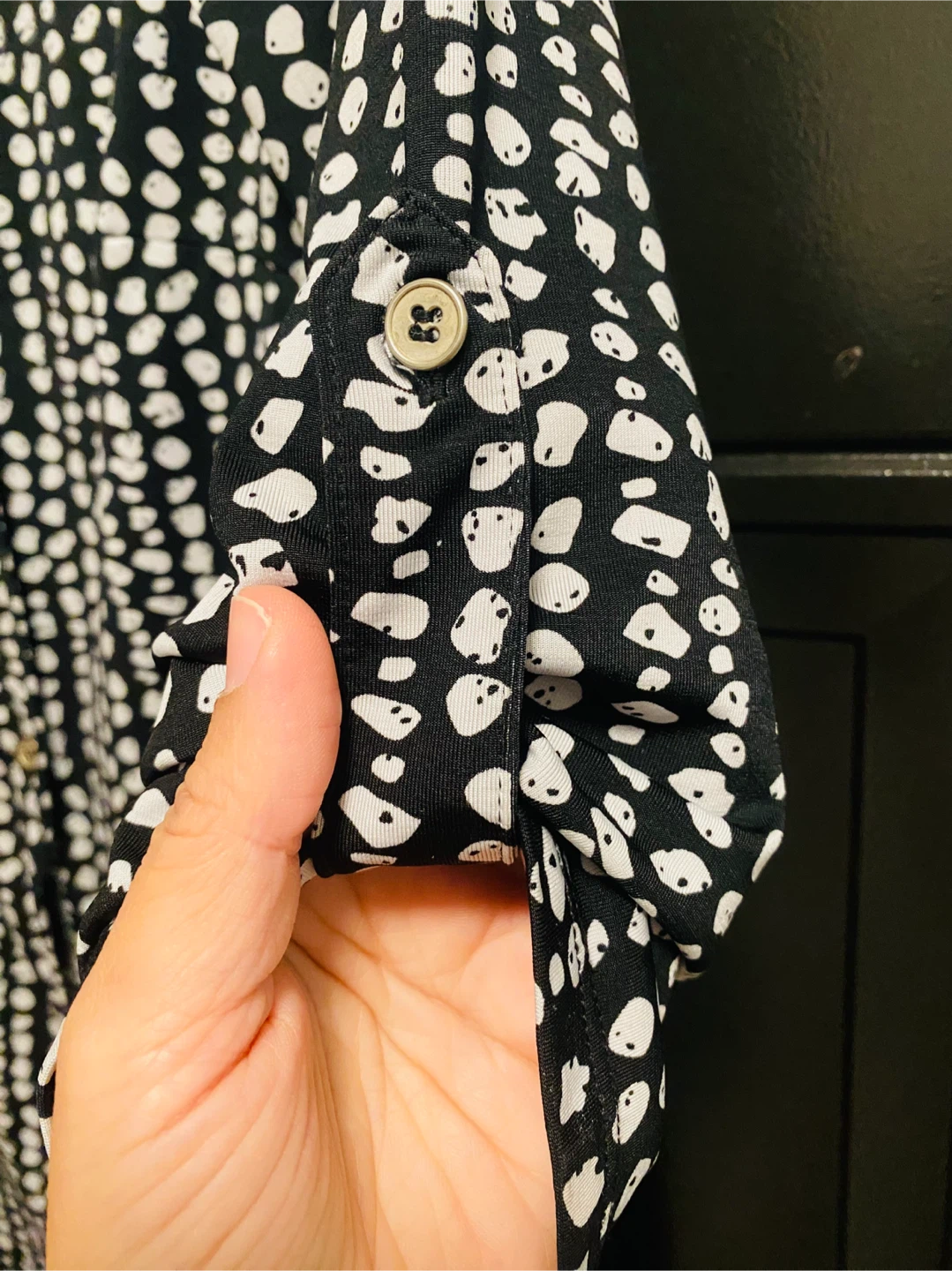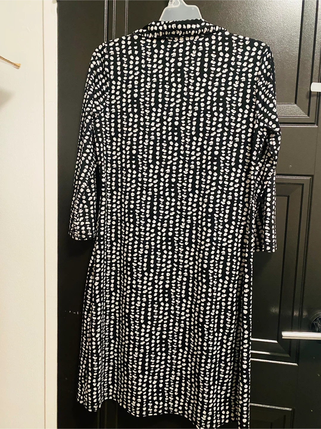 I'm selling a cute dotted black and white dress/ cardigan that's perfect for any occasion! This stylish dress features a unique pattern and is made from comfortable material. It's in great condition and ready for a new home. Here are the details: