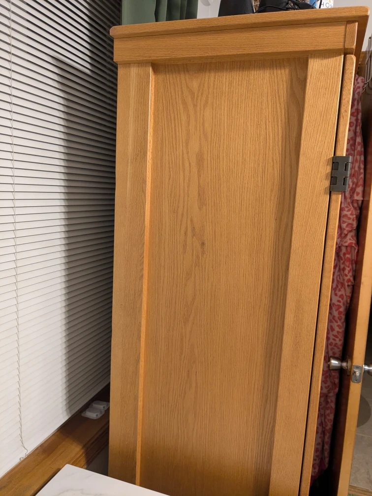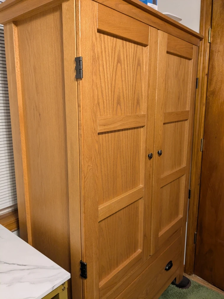 This gorgeous and highly functional Solid Oak Armoire is perfect for adding stylish storage to any room—from a bedroom to an office or a linen closet.