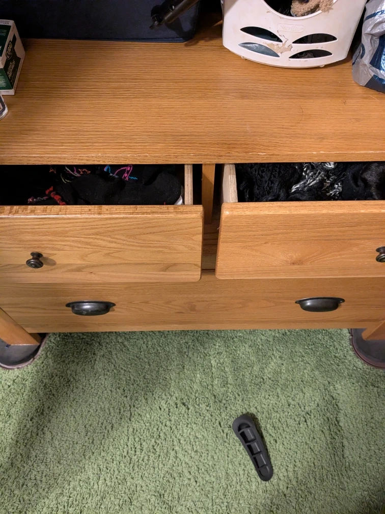 Convenient Drawers: The unit includes a total of three lower drawers (two smaller, one large) providing hidden space for smaller items.